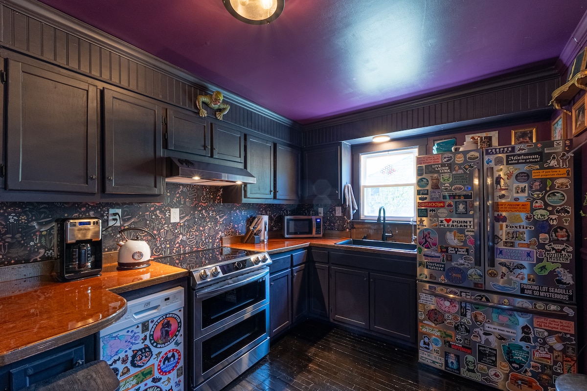 Hãy khám phá AirBnb theo chủ đề Mothman này và giải quyết toàn bộ phòng thoát hiểm của ngôi nhà! (Bạn không bao giờ bị nhốt trong, đó chỉ là một loạt các câu đố!) Tầng trên thật đáng sợ, hài hước và ấm cúng cùng một lúc. Tầng dưới là Hang Mothman với khúc côn cầu trên không, PS5, trò chơi arcade T2 và hơn thế nữa! Bên ngoài có một hố lửa đẹp với xích đu và võng dưới boong. Chúng tôi sẽ đánh giá PG cho sự đáng sợ, vì vậy những đứa trẻ 5-10 tuổi có thể lo lắng trừ khi chúng đào những bộ phim đáng sợ. Cách Fayetteville và Cầu New River Gorge ~1 dặm.