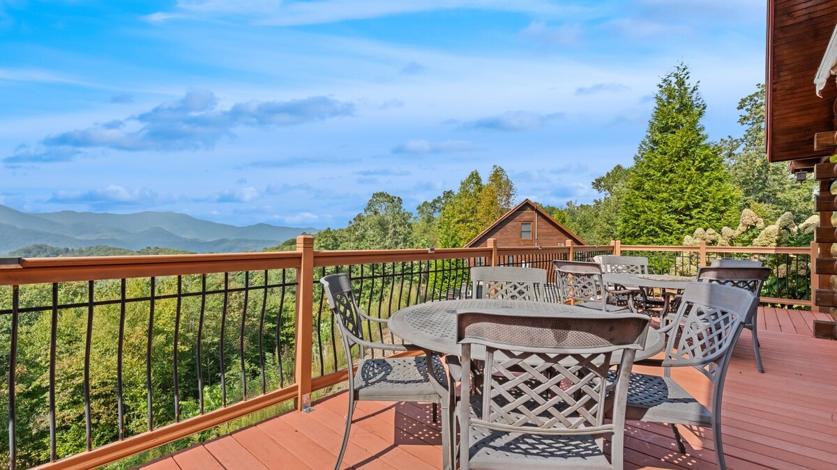 Xem triệu đô la! Để có được tầm nhìn như thế này, bạn sẽ có một chuyến lái xe khủng khiếp để đến đó nhưng cabin rất thuận tiện để đi đường cao tốc với chỉ một con đường dốc nhẹ nhưng ngắn. Cabin được làm từ gỗ cắt ra từ mảnh đất mà nó đang ngồi. Sàn gỗ bị thu hồi, lò sưởi bằng gạch bị thu hồi, ống khói đá, tường tập trung gỗ và hệ thống dây điện trong toàn bộ cabin để ngăn cách cabin này với tất cả các cabin khác. Tôi có một bộ bài lớn. Đây không phải là bộ bài lớn nhất từ trước đến nay nhưng mọi người đều yêu thích bộ bài này. Bạn sẽ thấy!
