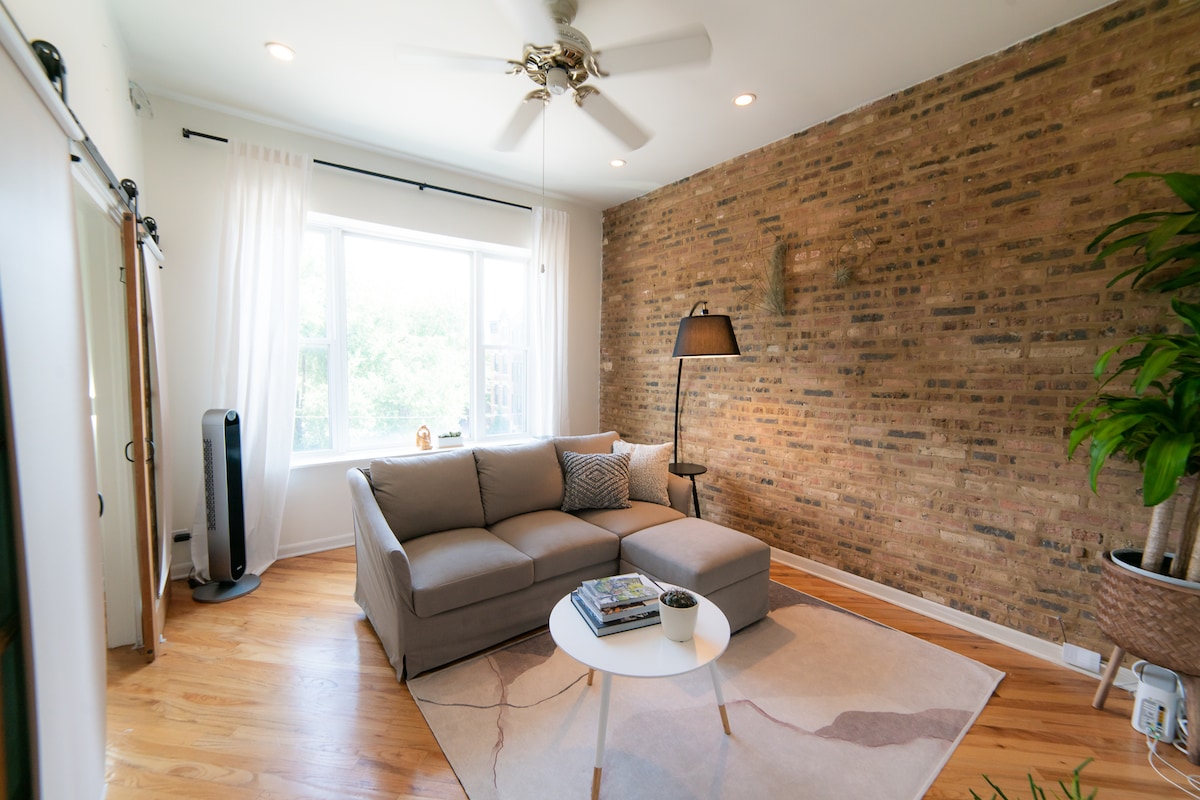 *Không có phí vệ sinh hoặc tiền đặt cọc ẩn * Tận hưởng Công viên Wicker với căn hộ studio được cải tạo riêng của bạn! Căn hộ đi kèm với một không gian sống rộng lớn, bao gồm một giường đôi có thể được kéo ra và chuyển đổi thành một chiếc giường cỡ king. Bếp nhỏ có tủ lạnh và lò vi sóng. Có điều hòa nhiệt độ, Wifi nhanh, TV, phòng tắm mới, tiện nghi giặt ủi và sân thượng chung với tầm nhìn ra đường chân trời. Gần tàu EL, đường cao tốc, mua sắm, nhà hàng, cuộc sống về đêm, quán cà phê, đường mòn xe đạp 606 và nhiều địa điểm khác!