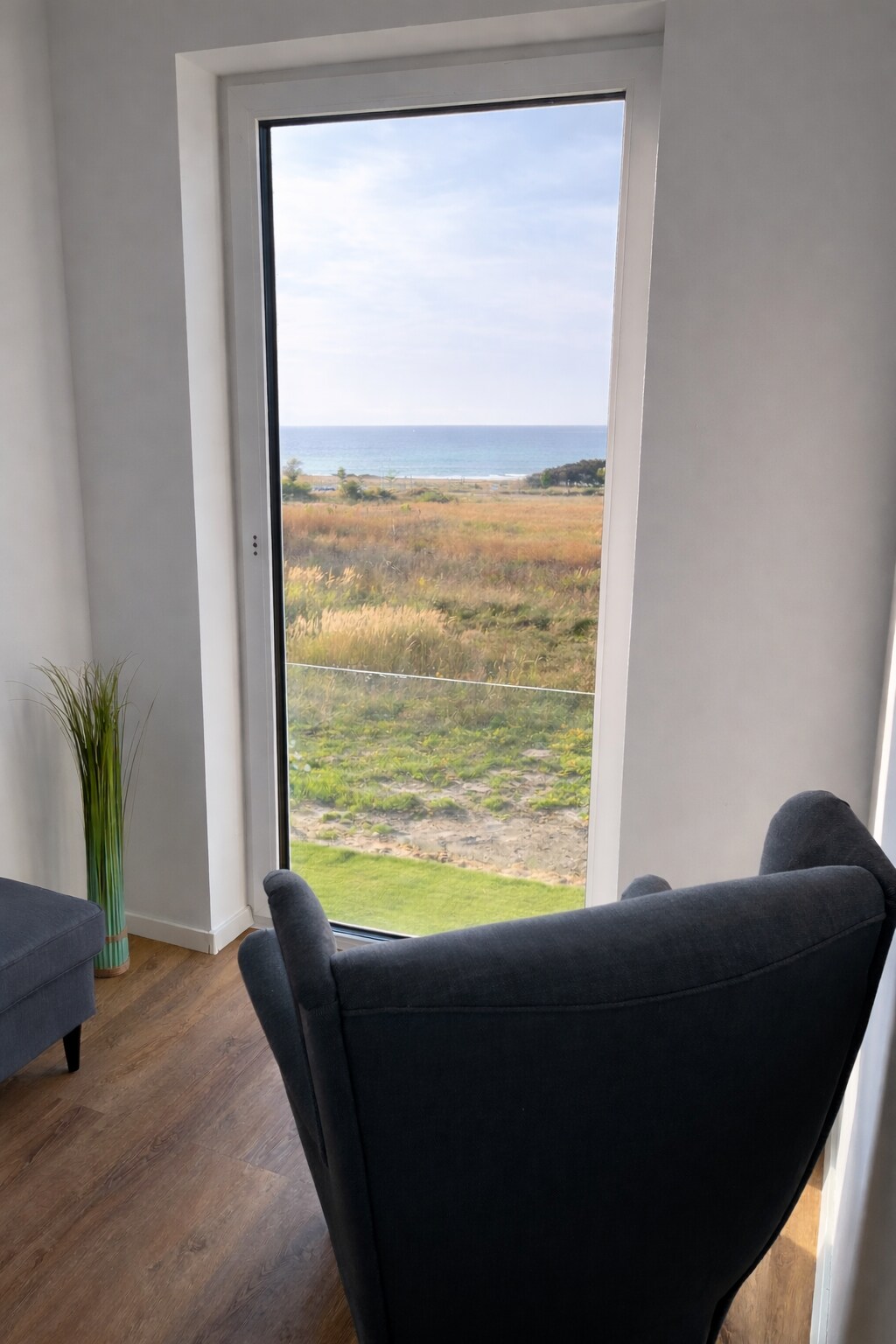 Được chứng nhận 5 sao. "Tầm nhìn ra biển Baltic" cung cấp không gian rộng rãi cho 4-6 người trên 148 mét vuông. Ở tầng trệt là khu vực chăm sóc sức khỏe riêng với vòi sen/nhà vệ sinh, phòng xông hơi khô và khu vực thư giãn với 3 ghế dài. Từ đó, bạn có thể ra sân thượng với khu vườn rộng rãi. Cửa sổ toàn cảnh lớn trên tầng 1 cho tầm nhìn ngoạn mục ra Biển Baltic. Wi-Fi, TV và lò sưởi mang lại sự thoải mái. Tất cả các SZ đều được trang bị giường lò xo hộp (1,80 x 2,00m) + lớp phủ gel. Nhà bếp đầy đủ tiện nghi và WM và máy sấy.