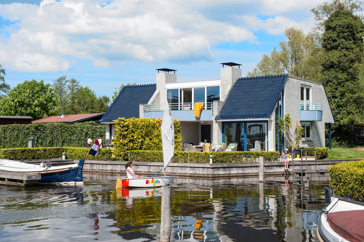 Beautiful villa located directly on the water. Do you want to relax or be active on the water, both are possible here! This unique house is located on a private island and is accessible by our own ferry (duration 1 min from street). The house is situated directly on the beautiful Loosdrechtse Plassen. Enjoy all the amenities the house has to offer. Waking up every morning with the sun rising, beautiful views and lots of space to enjoy yourself. Book directly!