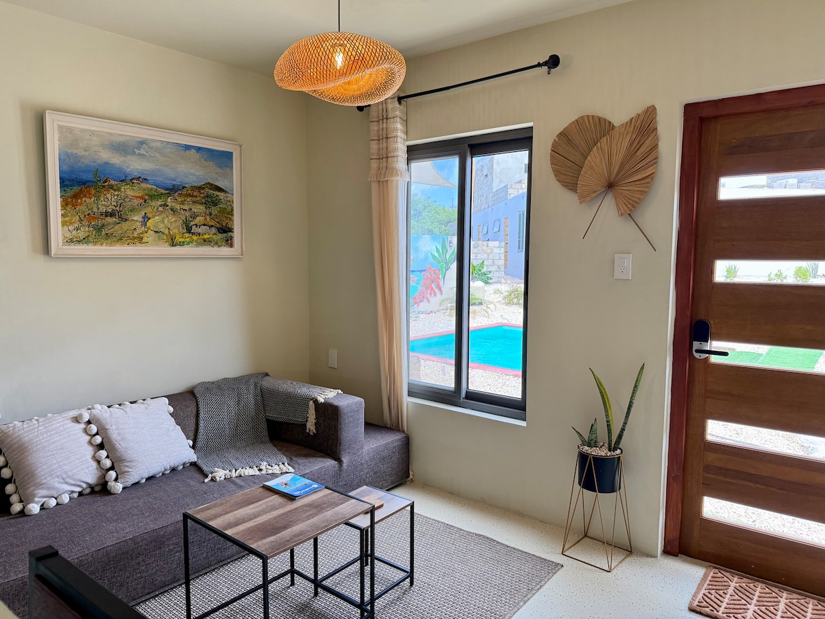 Bungalow một phòng ngủ hiện đại và sang trọng của chúng tôi, nằm cách bãi biển Jan Thiel chỉ 5 phút lái xe, cung cấp mọi thứ bạn cần cho một kỳ nghỉ thư giãn. Được thiết kế theo phong cách Ibiza quyến rũ, bungalow có phòng ngủ rộng rãi, phòng tắm khép kín sang trọng và bếp đầy đủ tiện nghi. Thư giãn trong khu vườn sân hiên xinh đẹp với hồ bơi riêng của bạn. Vị trí yên bình, kết hợp với tất cả các tiện nghi hiện đại, làm cho đây là một nơi hoàn hảo để tận hưởng những điều tuyệt vời nhất của Curaçao.
