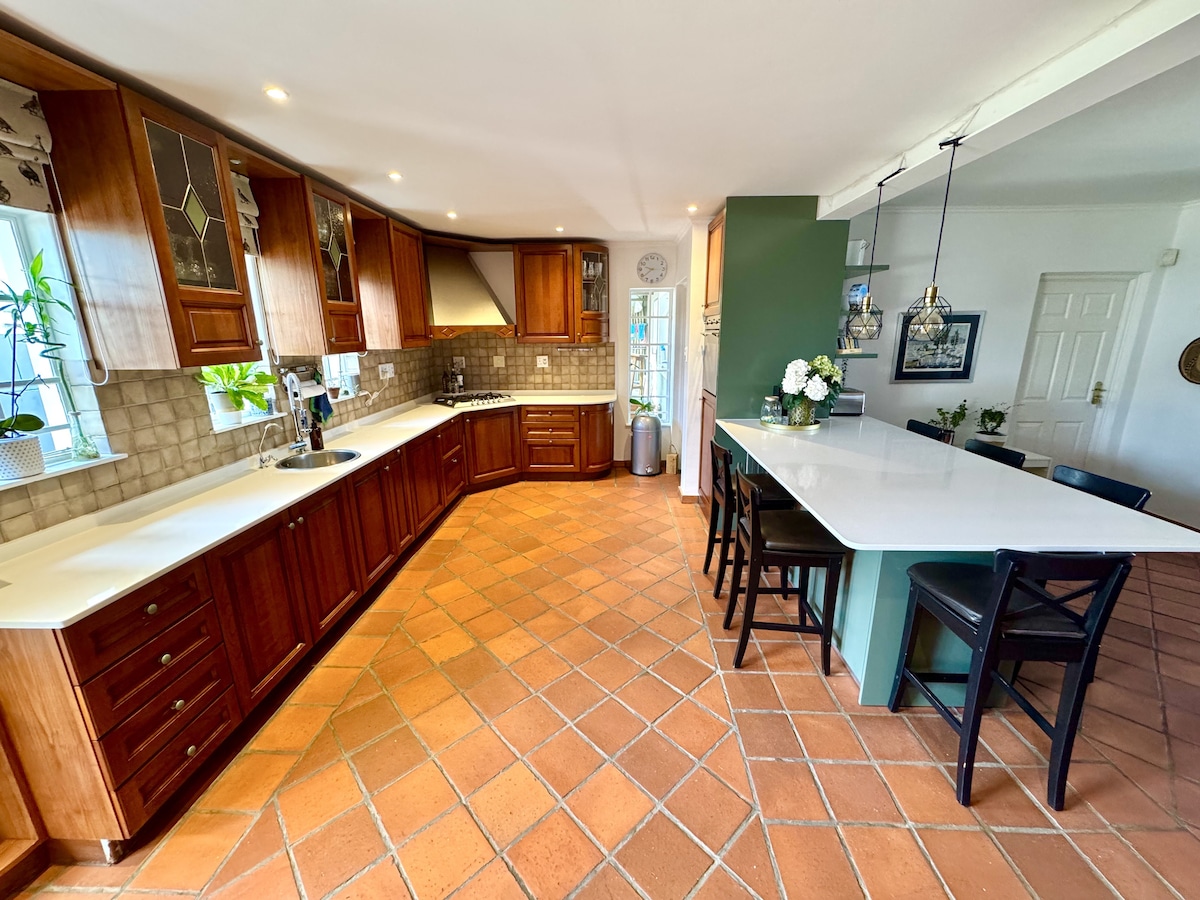 Nhà 3 phòng ngủ rộng rãi với tầm nhìn tuyệt đẹp, lò sưởi trong nhà, bàn bi-a, piano và tiện nghi braai ngoài trời. Lý tưởng cho gia đình hoặc cho một nhóm bạn. Nằm trên một ngọn đồi ở Eros, ngôi nhà gia đình sống này chỉ cách khu vườn bia, quán cà phê, nhà hàng và trung tâm mua sắm nổi tiếng nhất của Windhoek 5 phút đi bộ. Wi-Fi tốt. Xin lưu ý: đây là một ngôi nhà cũ không có lớp hoàn thiện lạ mắt. Nệm thoải mái. Bãi đỗ xe an toàn cho 3 xe trong khuôn viên. Quang cảnh đỉnh cao của thế giới từ hồ bơi!