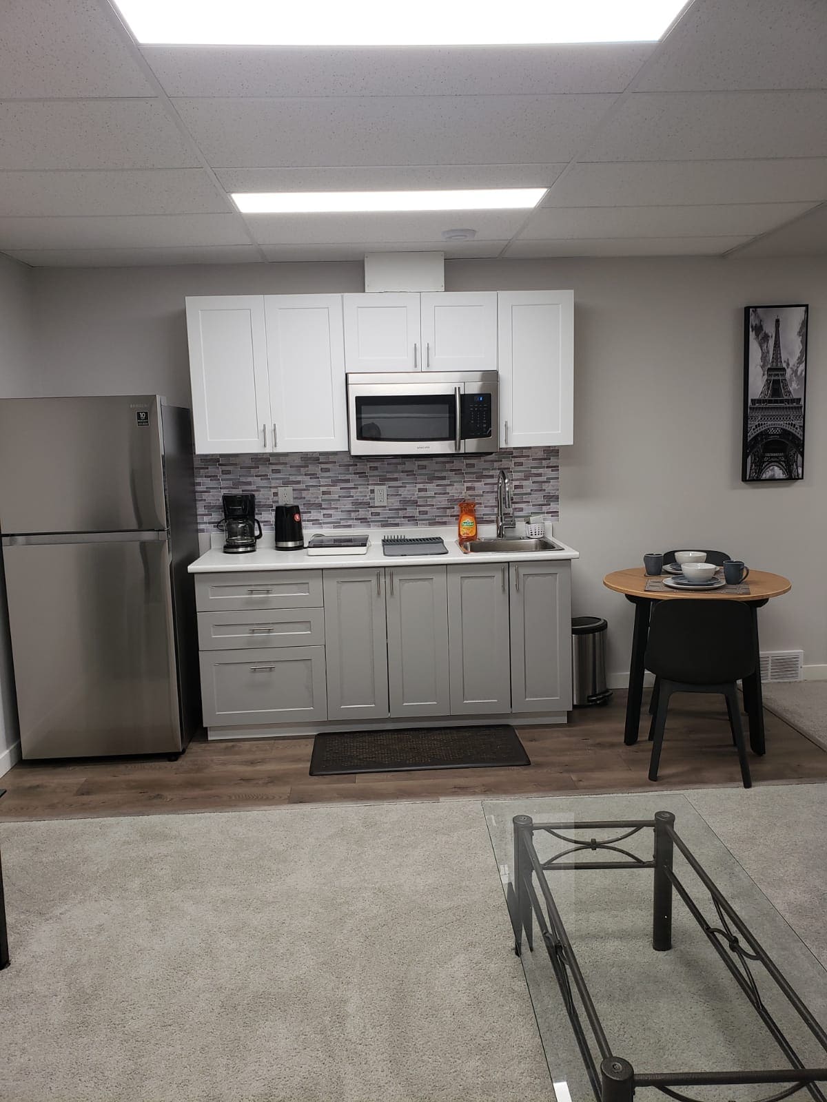Tìm kiếm một nơi nghỉ ngơi, riêng tư, yên tĩnh và yên tĩnh! Căn hộ tầng hầm 1 phòng ngủ với mặt bếp đi kèm tủ lạnh, lò vi sóng, ấm đun nước, máy pha cà phê, dao kéo cũng như dụng cụ phục vụ cơ bản để bạn sử dụng. Phòng được trang bị bàn đọc sách và ghế có thể điều chỉnh, máy chạy bộ để tập thể dục và giường queen ấm áp và ấm cúng cho một giấc ngủ hoàn hảo. Khăn tắm sạch sẽ cũng được cung cấp. Tọa lạc trong môi trường thanh bình của thành phố với hệ thống xe buýt quá cảnh chức năng.