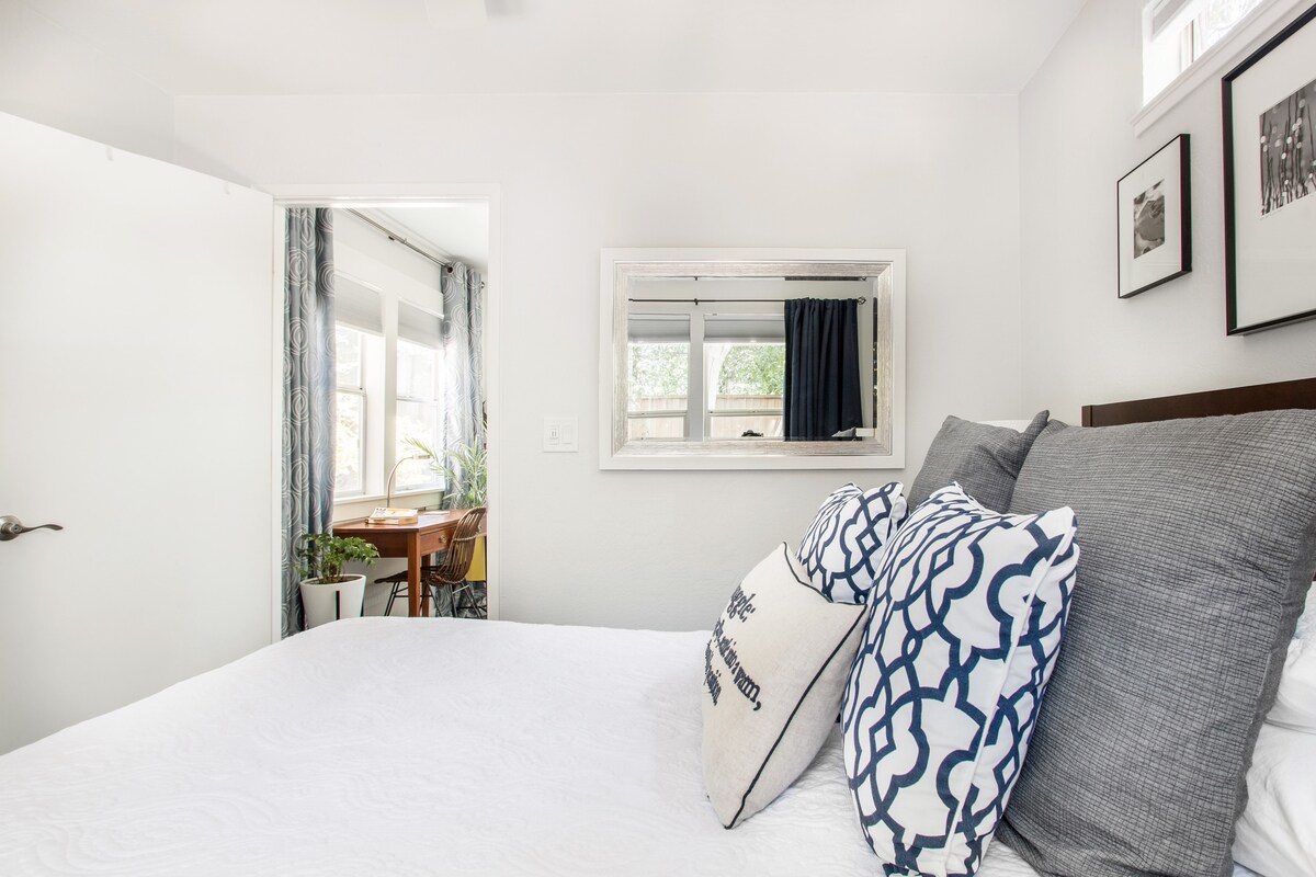 Grab a book and take it easy in the shaded garden hammock at a calm cottage with a cozy patio for balmy alfresco evenings. Stroll to a nearby restaurant for a locally-sourced dinner, then snuggle up in front of the TV in our peaceful retreat. This separate, private one-bedroom guesthouse is located in the back of our redwood tree-filled yard. This is an animal-free property due to monthly guests, friends & family with severe allergies. No exceptions. No Emotional Support Animals.