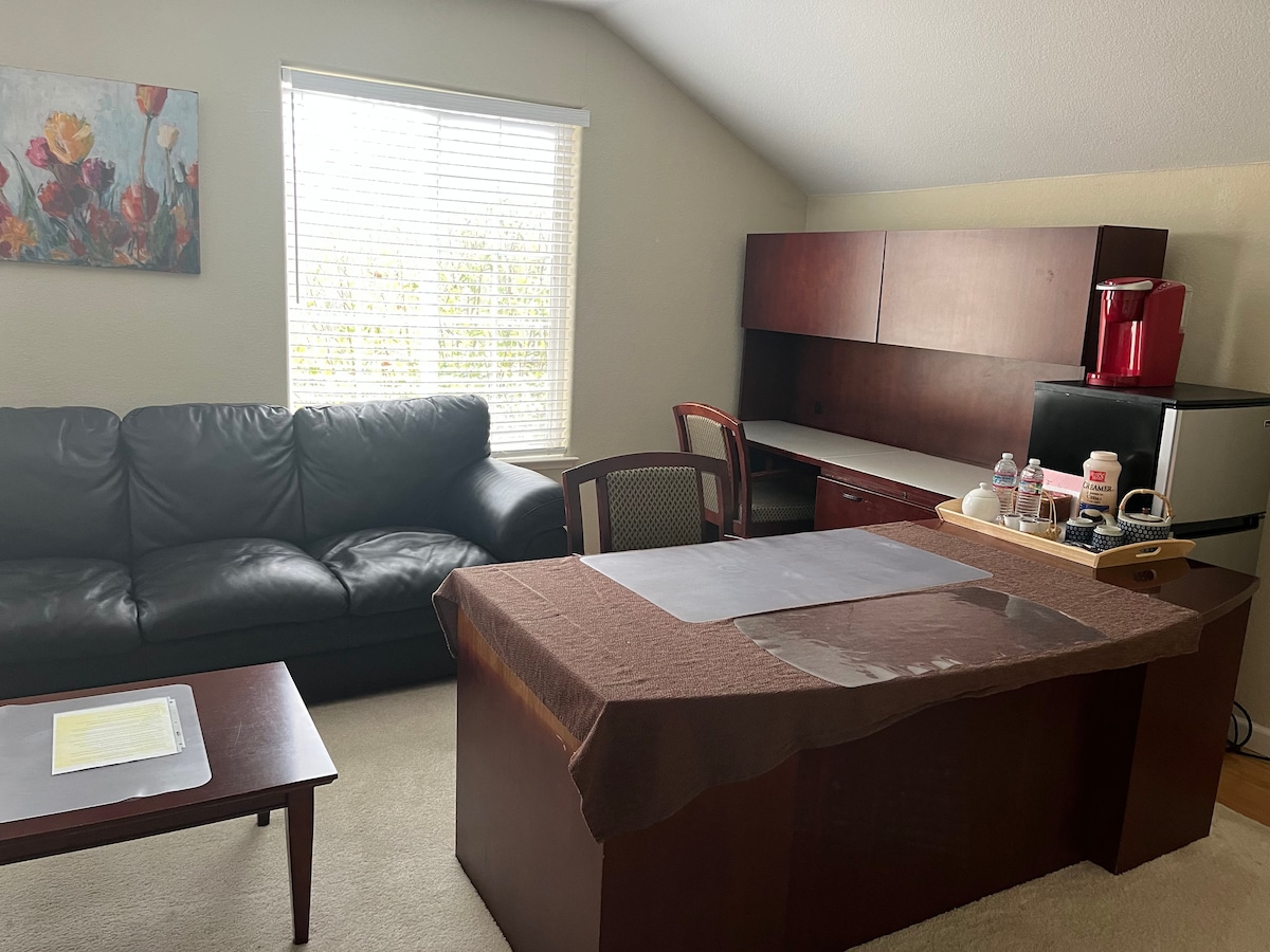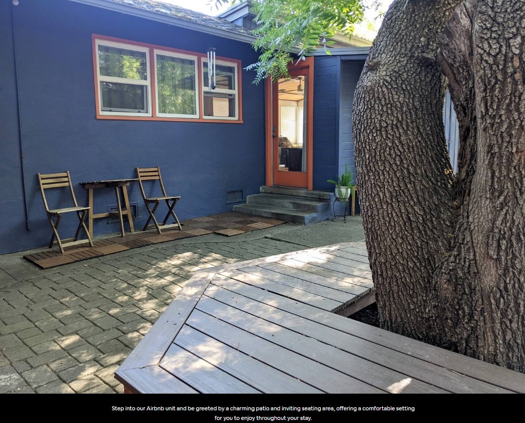 Our approximately 500 sq. ft. fully furnished studio is just a short drive from the UC Davis campus and within walking distance of two bus lines. The studio is located above a detached garage, separate from our main house, offering privacy and comfort. The unit includes a kitchenette with cooking essentials, a private shower, and a walk-in closet. A washer and dryer are available in the garage for guest use. High-speed internet and cable TV through Xfinity are also provided.