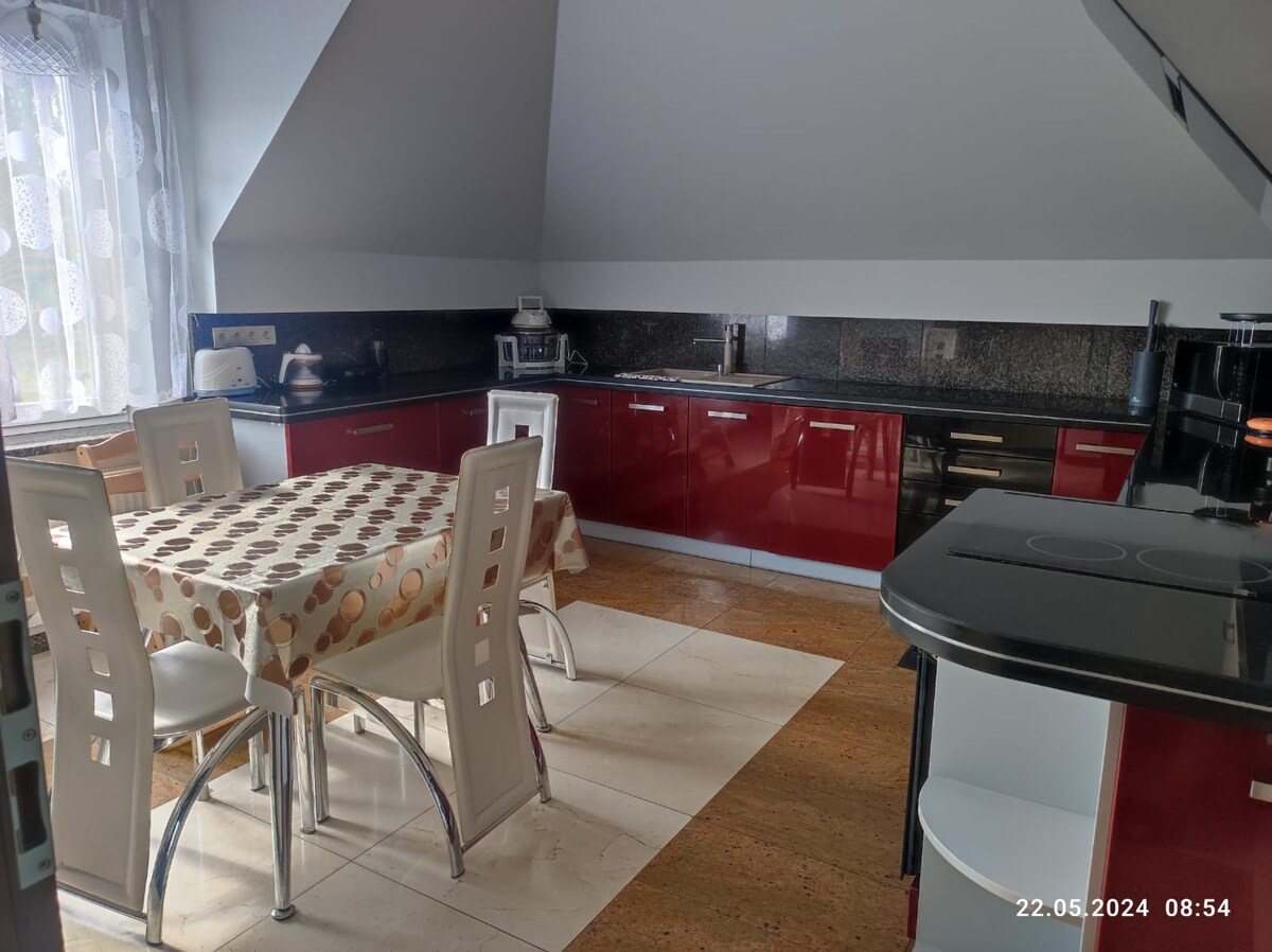Chúng tôi mời bạn đến một góc kỳ diệu, nơi thời gian trôi chậm hơn, và thiên nhiên bao trùm sự yên bình và tĩnh lặng. Nhà của chúng tôi là nơi hoàn hảo cho những ai muốn nghỉ ngơi khỏi sự hối hả và nhộn nhịp của thành phố và đắm mình trong bầu không khí bình dị của vùng nông thôn Ba Lan thực sự. Nằm ngay cạnh khu rừng rộng lớn, nơi đây mang đến sự tiếp xúc độc đáo với thiên nhiên – đi dạo buổi sáng giữa tiếng chim hót, buổi tối bên lò sưởi và mùi không khí trong lành mà bạn sẽ không tìm thấy ở bất kỳ nơi nào khác.