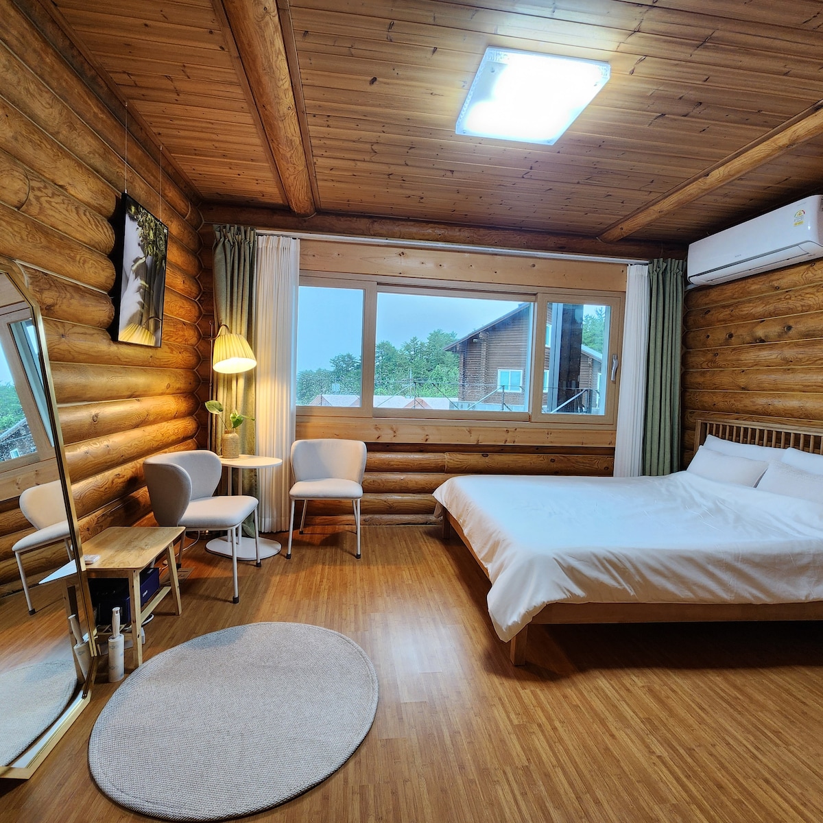 Dotori(acorn) Cabin nằm trong một khu rừng yên tĩnh ở phía tây Jeju, được xây dựng bởi cặp đôi chủ nhà sử dụng đất sét và gỗ. Khách có thể thưởng thức bữa sáng lành mạnh (không có bột ngọt), có súp chay hữu cơ, bánh mì lúa mì địa phương và salad rau vườn. Mặc dù Bãi biển Geumneng/Hyeopjae chỉ cách 2,5 km(5 phút lái xe hoặc 40 phút đi bộ), cabin tách biệt, không có nhà hoặc cơ sở thương mại gần đó, đảm bảo trải nghiệm riêng tư. Dotori hoàn hảo cho những ai đang tìm kiếm một kỳ nghỉ yên bình.