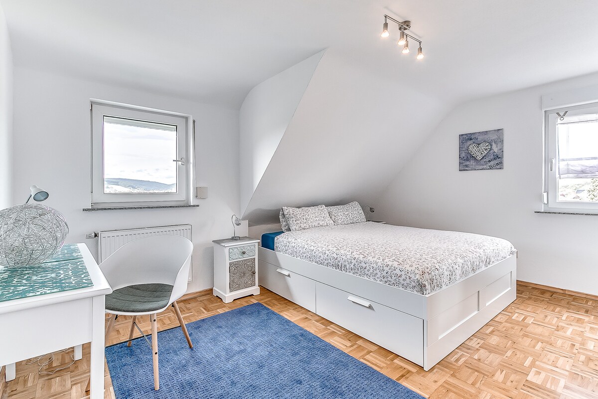 Chào mừng bạn đến với Heaven Suite – nơi nghỉ dưỡng giữa thiên nhiên Rhön. Biệt thự rừng được cải tạo đáng yêu từ năm 1982 nằm trên một lô đất rộng 6.500 m² ngay rìa rừng – được bao quanh bởi những cây cổ thụ và nhiều nơi ấm cúng để nán lại. Khu vực chăm sóc sức khỏe chung với thiết bị thể dục, bể sục và phòng xông hơi rộng rãi mời bạn thư giãn. Tại đây bạn có thể thư giãn, sạc pin và tận hưởng thiên nhiên hết mình.
