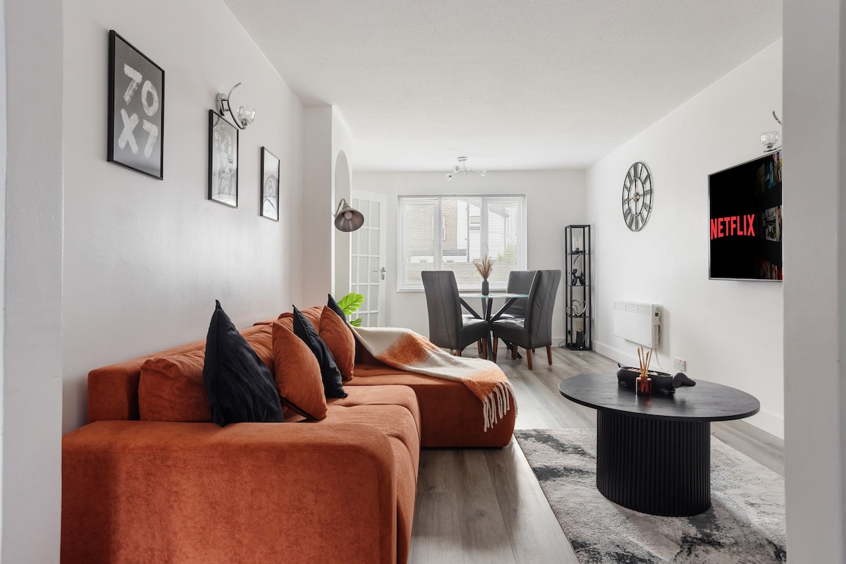 Thư giãn trong căn hộ 1 giường quyến rũ này chỉ cách trung tâm London 25 phút. Tận hưởng nhà bếp đầy đủ tiện nghi, phòng tắm hiện đại, phòng ngủ đôi với không gian văn phòng và phòng khách đầy phong cách với khu vực ăn uống và TV 42". Hoàn hảo cho cặp đôi, gia đình hoặc người làm việc từ xa, với Wi-Fi tốc độ cao, máy pha cà phê bean-to-cup và bộ sưu tập trò chơi cờ bàn lớn cho những đêm ấm cúng. Một công viên xinh đẹp và một siêu thị lớn chỉ cách đó một đoạn đi bộ ngắn.