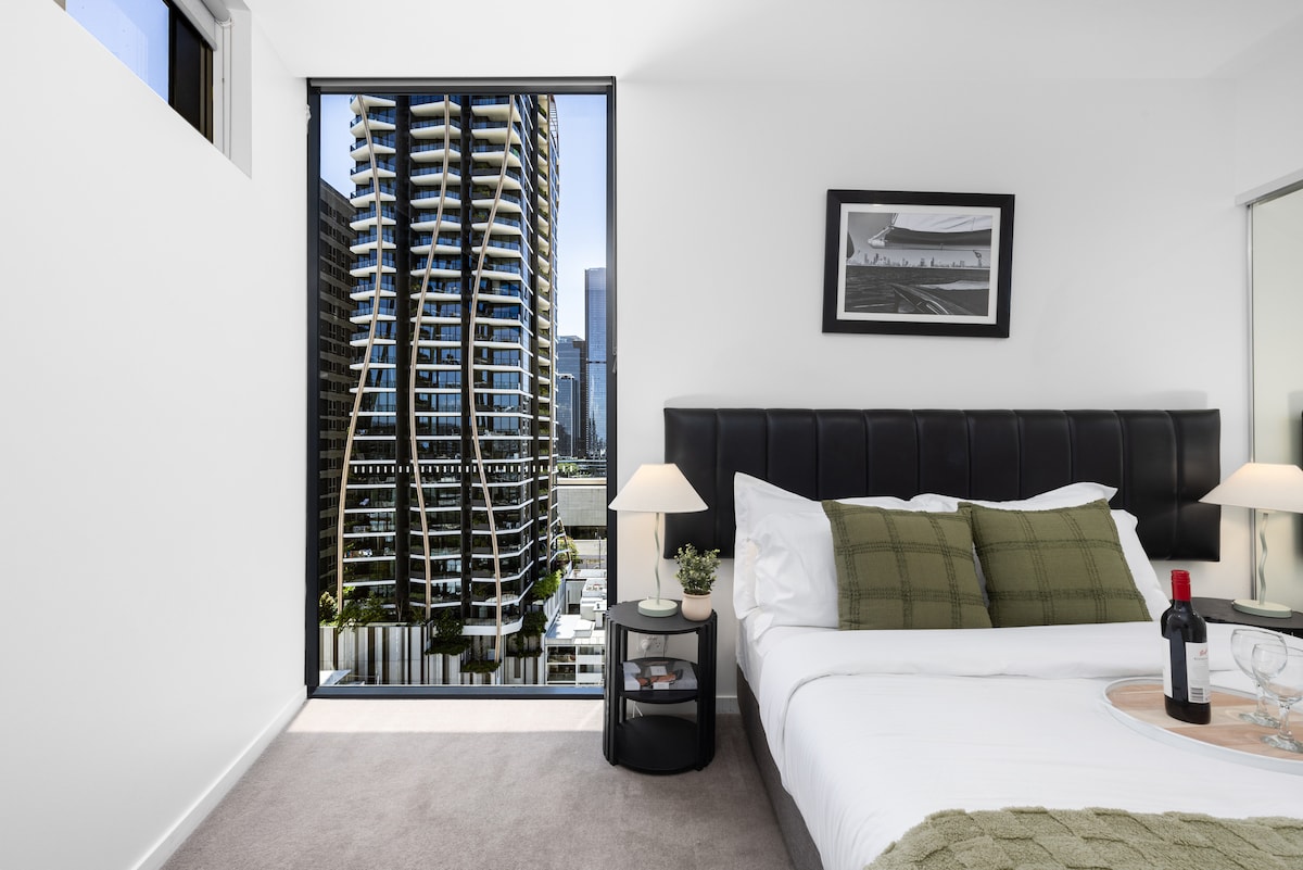 Quang cảnh thành phố tuyệt vời tại căn hộ 2 giường nằm ở trung tâm này nằm trong một khu phức hợp đầy phong cách. Phòng ngủ chính có giường cỡ king với TV thông minh lớn và rèm cửa để tạo sự thoải mái cho bạn. Học với giường đơn. Điều hòa không khí tập trung có ống dẫn trong suốt. Khu vực sinh hoạt thoải mái mở ra ban công với tầm nhìn tuyệt đẹp ra sông và thành phố. TV thông minh đến phòng chờ và nhà bếp kích thước đầy đủ. Chỗ đỗ xe an toàn được chỉ định và đi bộ một quãng ngắn đến tất cả các điểm tham quan sôi động ở Nam Brisbane.