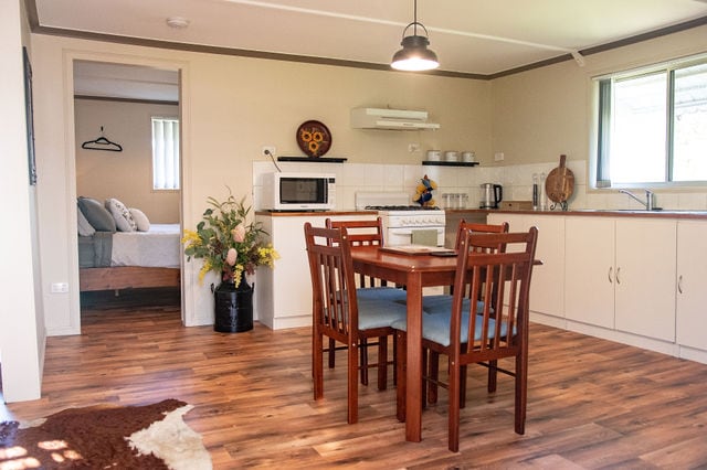 Relax in the quiet tranquility of Country Living, right in the heart of a working cattle property only 8km west of Stanthorpe, Qld Spencer Lane cottages is my piece of paradise and i offer you Spencer Cottage. The Cottage is fully self contained with a queen bed, kitchen and bathroom, lounge room with comfy sofa lounge, TV and a reverse cycle air conditioner. Outside there is a sitting area with BBQ and stunning views of the stables and surrounding picturesque property areas.
