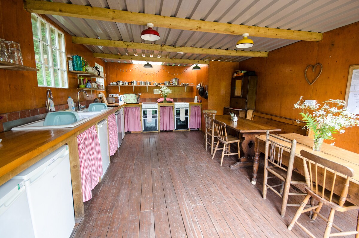 Khách được độc quyền sử dụng khu rừng riêng, sân trò chơi và cơ sở vật chất tuyệt vời. Chúng tôi có ba lều ngủ sang trọng và một lều phòng chờ khổng lồ, bao quanh một khu vực trung tâm với một hố lửa, nhà bếp và quầy bar ngoài trời có mái che, bàn tiệc có mái che và Scandi BBQ Hut được ưa chuộng. Trang web của chúng tôi hoàn hảo cho 2-3 gia đình hoặc một nhóm nhỏ. Giá áp dụng cho toàn bộ trang web. Vào những thời điểm yên tĩnh hơn, chúng tôi sẽ giảm giá chỉ cho việc sử dụng 2 lều - liên hệ để thảo luận về các yêu cầu của bạn.