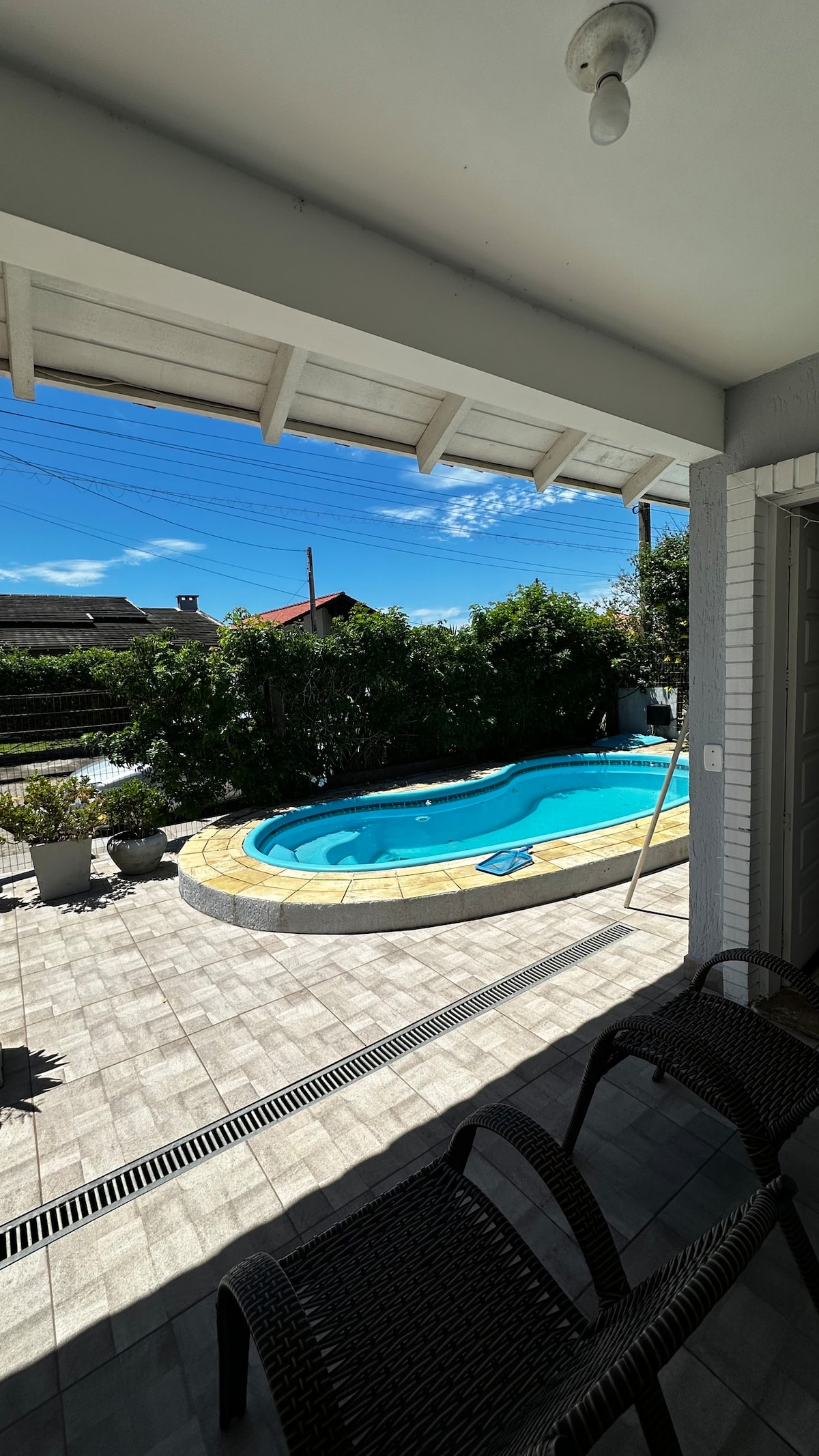 Gần siêu thị, nhà thuốc, khu ăn uống, cửa hàng kem và chỉ cách biển 500m. Cấu trúc của ngôi nhà được dùng chung với phần còn lại của sân, dùng chung đất với chủ sở hữu bất động sản. Có thú cưng ngoan ngoãn và có thể được cất giữ. 🐶🐶🐈🐈🐈⬛ Chủ sở hữu của ngôi nhà cũng cung cấp dịch vụ đưa đón có thể thương lượng để thoải mái hơn khi đi du lịch trong thành phố. Hồ bơi dùng chung 🏊♂️