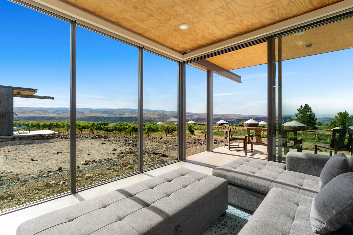 Phòng chờ VIP là một ngôi nhà được thiết kế theo phong cách Olson Kundig. Cách Gorge Amphitheatre vài bước chân, nhìn ra vườn nho Cave B Estate Winery và Sông Columbia. Nhà 1 phòng ngủ, 1 phòng tắm của chúng tôi có sân hiên riêng và nhà bếp được nâng cấp. Đó là một cảm giác công nghiệp thoải mái, hiện đại phù hợp với cảnh quan. Đi bộ đến các buổi hòa nhạc, nếm thử rượu vang, ăn tối hoặc đặt chỗ spa. Đi bộ đường dài đến Frenchman Coulee, đạp xe Ancient Lakes, tận hưởng yoga trên sân hiên hoặc chỉ thư giãn và ngắm cảnh