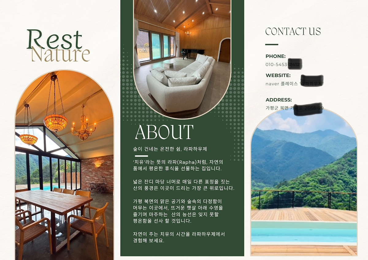 Đó là một không gian hoàn chỉnh 250 pyeong cho chỉ một nhóm. Ngôi nhà nhỏ được xây dựng trên sườn cây thông ở Rừng Gwangneung Nó gần Seoul, nhưng đáng ngạc nhiên, đó là một vùng nông thôn, và nó chứa đầy âm thanh rừng yên tĩnh và mùi rừng. Đó là một nơi được bao quanh bởi rừng cây. Tất cả các không gian chỉ dành cho một nhóm từ thời gian nhận phòng đến thời gian trả phòng. Âm thanh giấc ngủ ngắn bao gồm 2 ngôi nhà và 2 nhà kính. Tôi hy vọng bạn có thể tận hưởng một kỳ nghỉ dễ chịu trong ngôi nhà lớn và ngôi nhà nhỏ, 2 nhà kính với những cảm giác khác nhau, hố lửa trong sân và lối đi dạo nhỏ:) Hãy dành thời gian yên tĩnh trong ngôi nhà yên tĩnh và yên tĩnh.