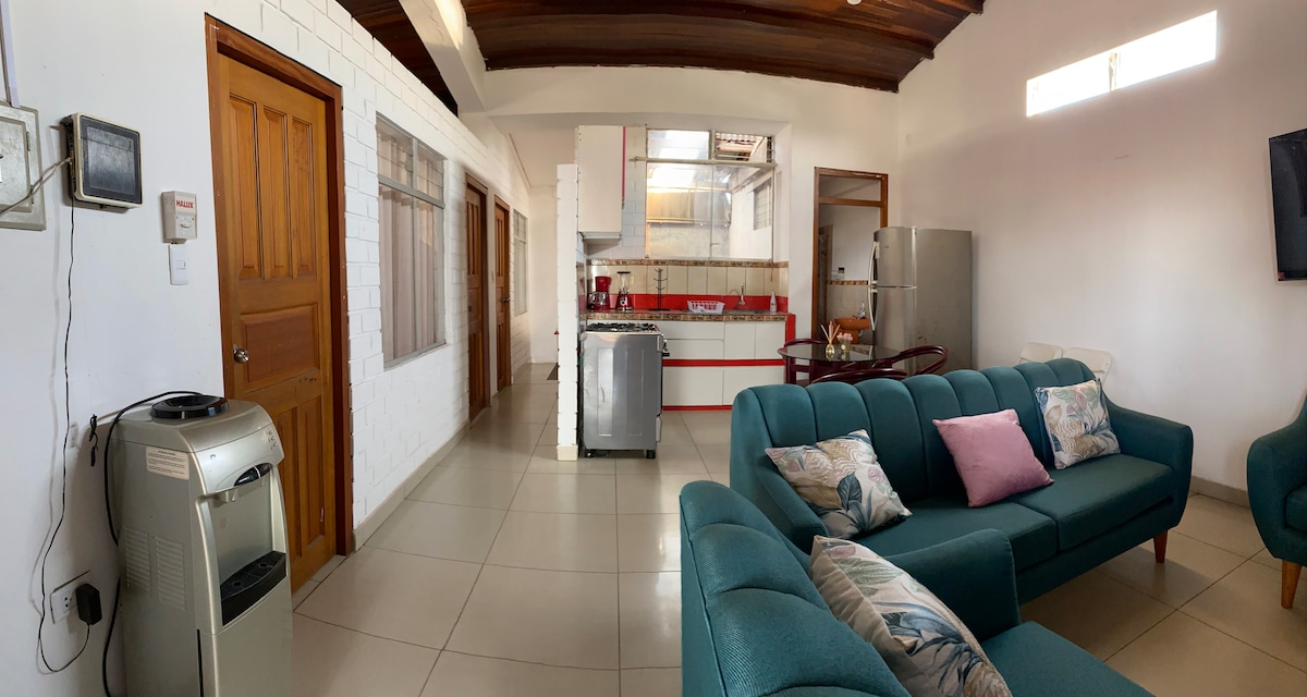 CĂN HỘ TẦNG một, LỐI VÀO ĐƯỜNG PHỐ TRỰC TIẾP và RIÊNG TƯ, có điều hòa không khí và Wi-Fi tốc độ cao. Nó nằm cách Plaza de Armas 12 dãy nhà. 2 phòng ngủ: Một giường đôi với giường queen, TV thông minh và một giường đôi khác với 2 giường 1,5 giường. 1 phòng tắm đầy đủ với vòi sen, 3 quạt trần, nhà bếp đầy đủ tiện nghi, phòng ăn và phòng khách với TV thông minh, phòng giặt ủi riêng. Gần đó bạn sẽ tìm thấy một công viên, chợ, Sân vận động Pucallpa, Essalud, v.v. Bạn có thể ở lại lâu dài.