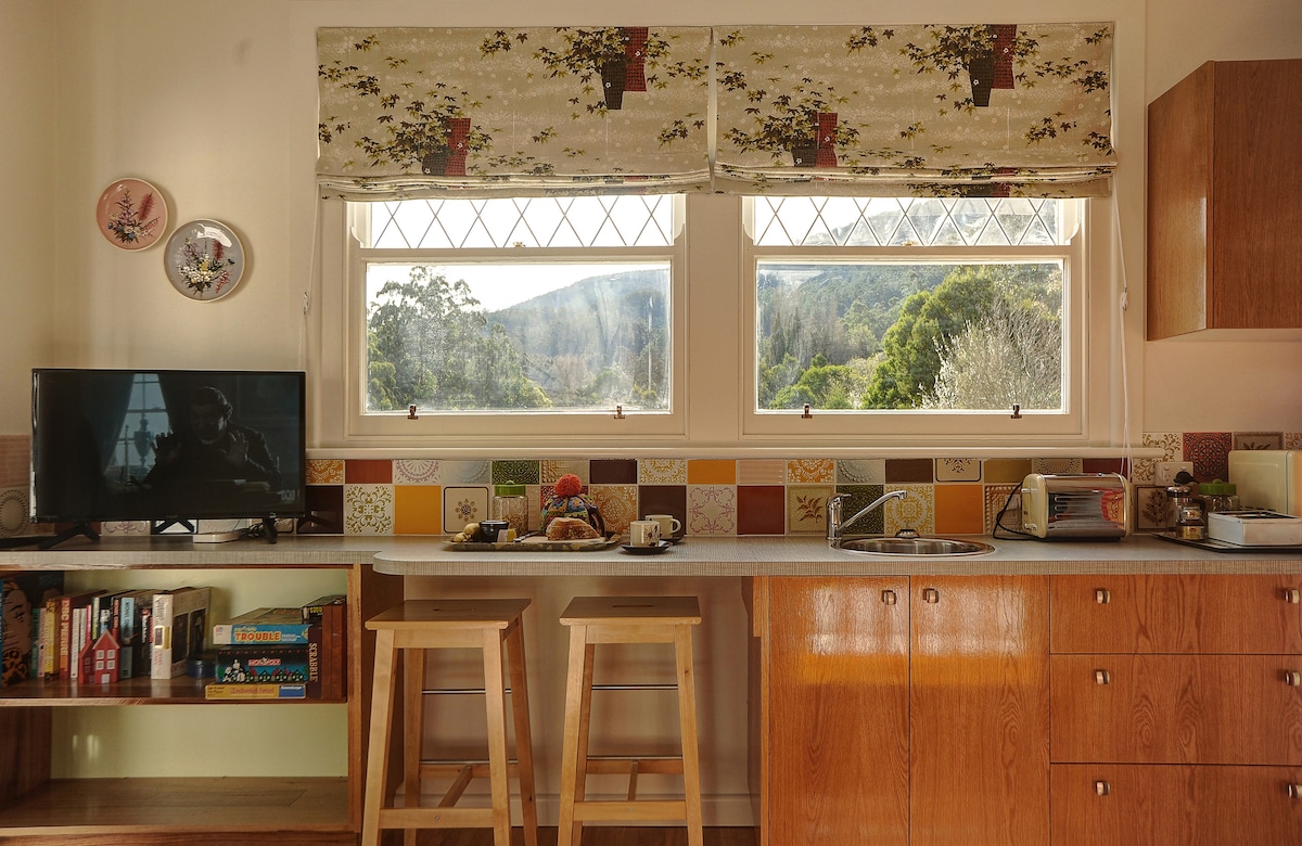 Được xây dựng bởi các nghệ sĩ lập dị vào những năm 80, viên gạch bùn nhỏ kỳ lạ này nằm ngay trung tâm Thung lũng Yarra được bao quanh bởi các nhà máy rượu vang, những khu vườn tuyệt đẹp và tầm nhìn. Gần đây đã được cải tạo để tạo sự thoải mái với sàn bê tông, điều hòa không khí mới, hệ thống nước nóng, phòng tắm được cải tạo và nhiều không gian ngoài trời. Bếp nhỏ bao gồm máy pha cà phê, ấm đun nước và tiện nghi, nồi chiên không khí, máy nướng bánh mì, nồi hấp trứng, dụng cụ, tủ lạnh và lò vi sóng. Nơi nghỉ ngơi lãng mạn hoàn hảo được bao quanh bởi thiên nhiên.