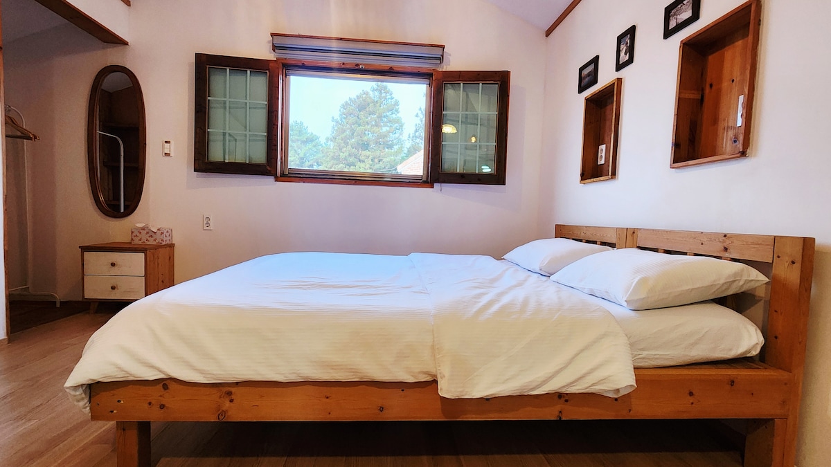Đây là nơi để bạn tận hưởng sự yên bình của đảo Jeju trong phụ lục. Vào ban ngày, bạn có thể cảm nhận được ánh sáng mặt trời ấm áp của đảo Jeju đi qua cửa sổ, và vào buổi tối, đó là một phụ lục nơi bạn có thể nhìn thấy hoàng hôn đỏ và Dải Ngân hà tốt. Đề xuất cho những người cần được chữa lành trong chuyến đi đến đảo Jeju. * 8 phút đi ô tô từ Bãi biển Hyeopjae * 8 phút đi ô tô từ Geum Oreum * 10 phút bằng xe hơi từ Isidol Ranch * Cách Đường mòn ven biển Gwideok 5 phút bằng xe hơi * Cách Đường ven biển cối xay gió Shinchang 15 phút đi ô tô