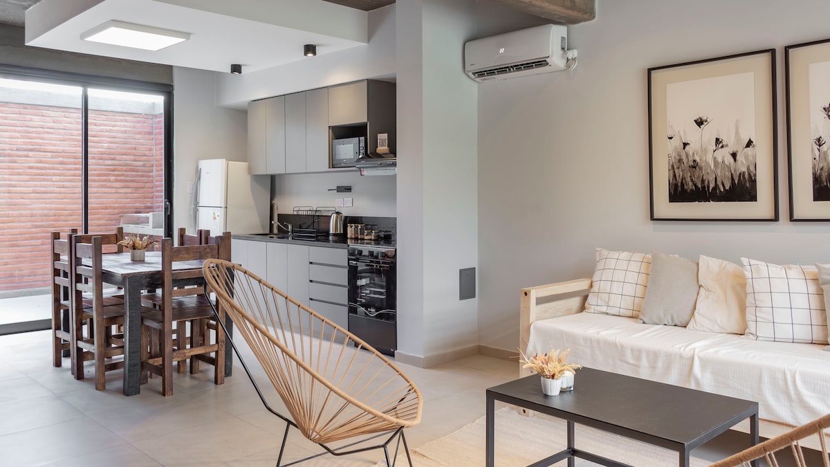 Thoát khỏi tiếng ồn và trải nghiệm Tucumán một cách chân thực. Căn hộ ấm cúng của chúng tôi ở Villa Luján, chỉ cách trung tâm 2,5 km và gần Yerba Buena và Hiệp hội Nông thôn, lý tưởng cho những ai tìm kiếm sự yên tĩnh mà không cần rời khỏi thành phố. Chia sẻ thu nhập với không gian văn hóa La Colorida, một cơ hội duy nhất để tìm hiểu khung cảnh nghệ thuật độc lập của Tucumán. Ngoài ra, nó hoàn hảo nếu bạn đi du lịch bằng ô tô: nó có một gara riêng miễn phí trong khuôn viên để bạn hoàn toàn thoải mái.