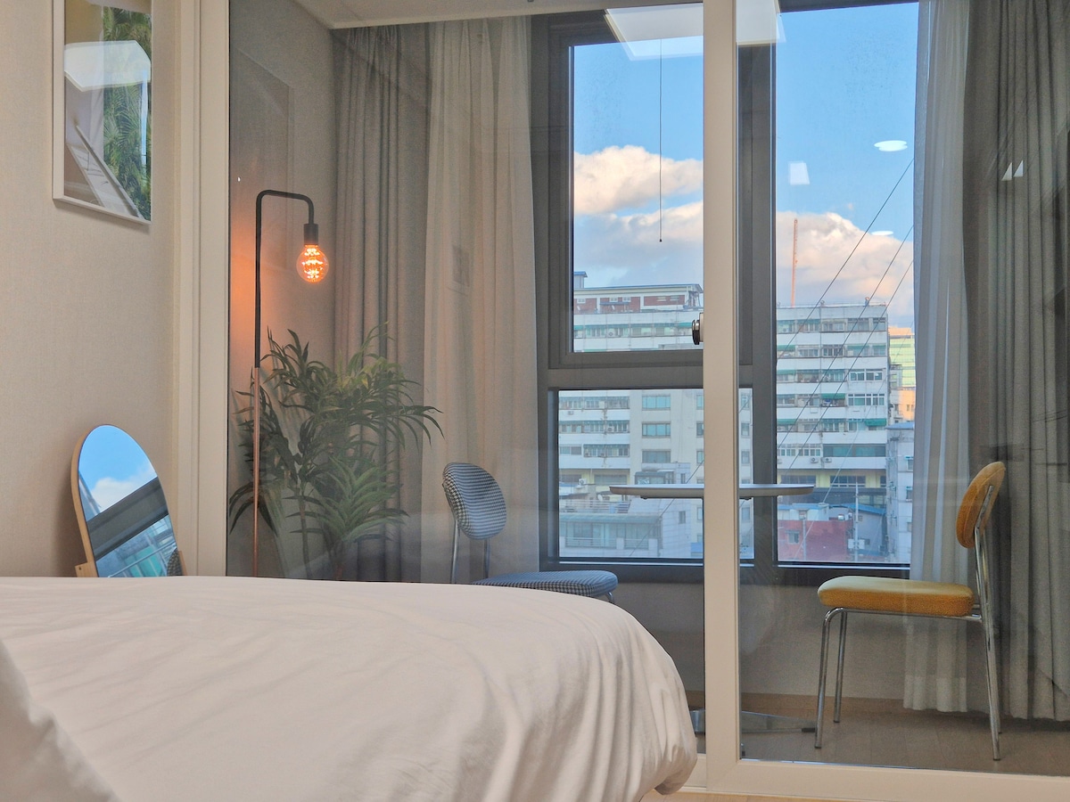 [Nghỉ ngơi, 413] 3 phút đến MRT 3lines | Central Seoul | snug | City View | Xe buýt sân bay