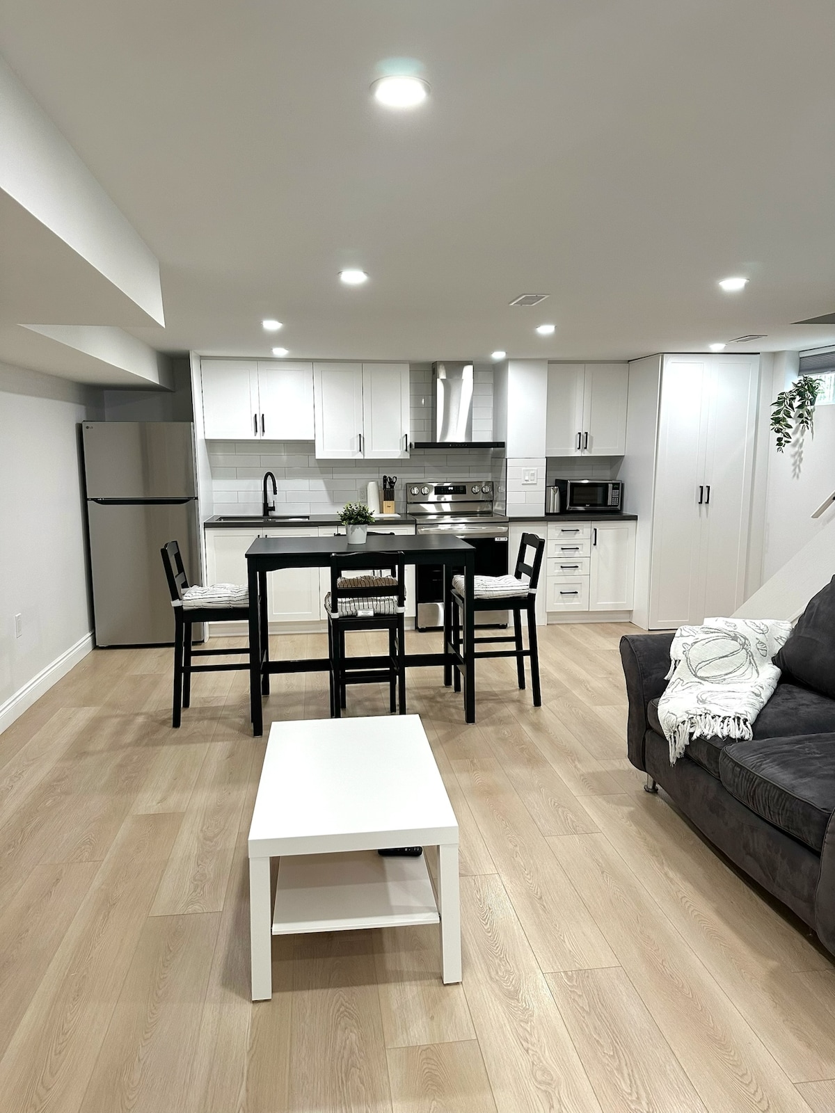 Chào mừng bạn đến với căn hộ hoàn toàn mới - sạch sẽ - Lower Level studio của chúng tôi với mọi thứ bạn cần trong thời gian lưu trú của mình. Địa điểm của chúng tôi cách sân bay Pearson 10 phút lái xe, 10 phút đi tàu điện ngầm và 30 phút - ngoài giờ cao điểm - vào trung tâm thành phố. Địa điểm này cách một trung tâm tạp hóa (Metro, Shoppers Drug Mart, LCBO) một quãng đường đi bộ. Chúng tôi nằm trong khu vực xanh yên tĩnh, hai công viên gần đó. Chúng tôi sẽ vui lòng trợ giúp và trả lời bất kỳ câu hỏi nào! Chúng tôi hoan nghênh khách ở ngắn hạn và dài hạn.