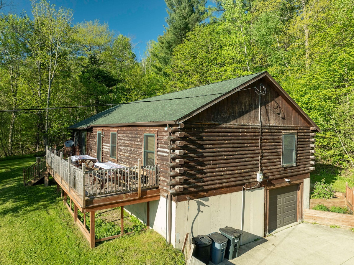 Our charming cabin, renovated with modern amenities, is nestled on 3 acres of picturesque woodland, near state land, perfect for families or friends seeking outdoor adventures. Enjoy a comfortable bedroom, a loft area for extra guests, and breathtaking views from the large deck. Immerse yourself in nature, and stay connected with high-speed WIFI. Book your stay today to experience peace and serenity in our little slice of paradise.