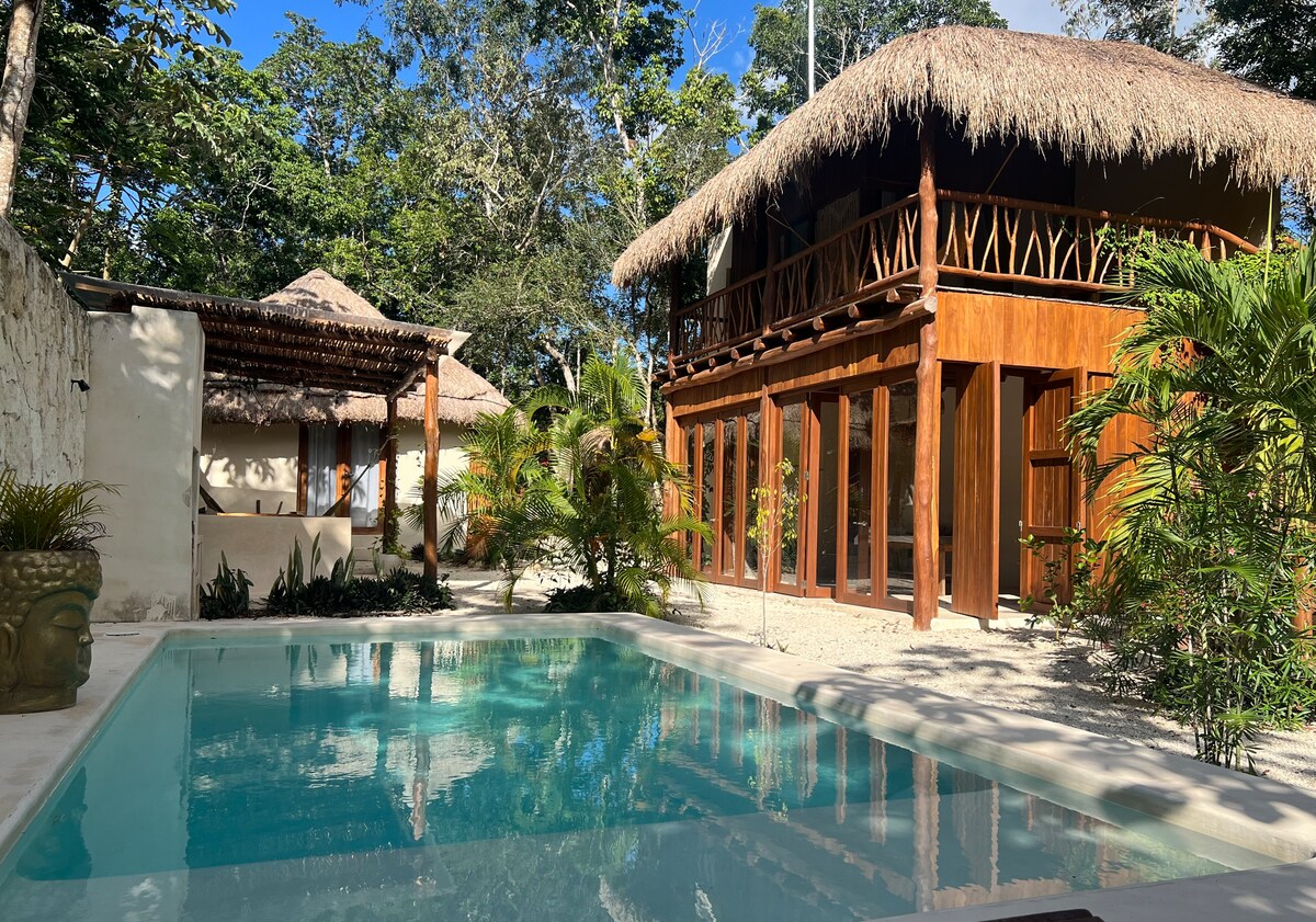 Refugio eco-friendly off-grid en la selva maya. Despierta entre árboles y aves, lejos del ruido pero cerca de cenotes y de la zona arqueológica de Cobá. Un espacio sostenible que invita a reconectar con la naturaleza y contigo mismo. Eco-friendly off-grid hideaway in the Mayan jungle. Wake up surrounded by trees and birds, away from noise yet close to cenotes and the Cobá archaeological zone. A sustainable space to reconnect with nature and yourself.