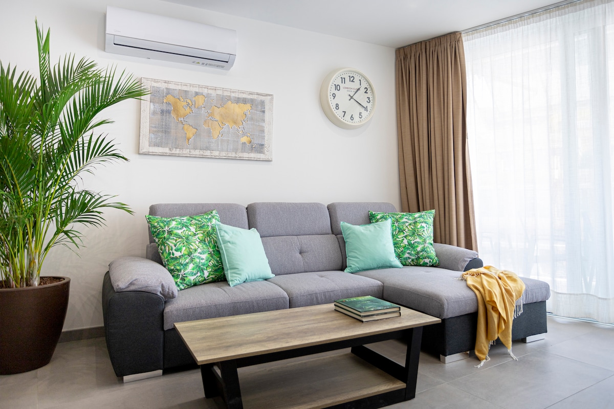 Nghỉ ngơi và thư giãn trong không gian yên tĩnh, phong cách với tầm nhìn ra đại dương, điều hòa không khí, Wi-Fi miễn phí, đồ vệ sinh cá nhân miễn phí, hộp an toàn, giường đôi, khăn tắm và ga trải giường. Chúng tôi cung cấp cà phê và trà miễn phí, TV 55 inch lớn trong phòng khách và TV 32 inch trong phòng ngủ với truy cập miễn phí trên Netflix, Prime Video, Disney Plus, IPTV với các kênh từ khắp nơi trên thế giới, máy giặt với máy sấy và chất tẩy rửa miễn phí, nhà bếp được trang bị đầy đủ tiện nghi, tủ lạnh và tủ đông lớn, sofa giường lớn trong phòng khách,v.v.