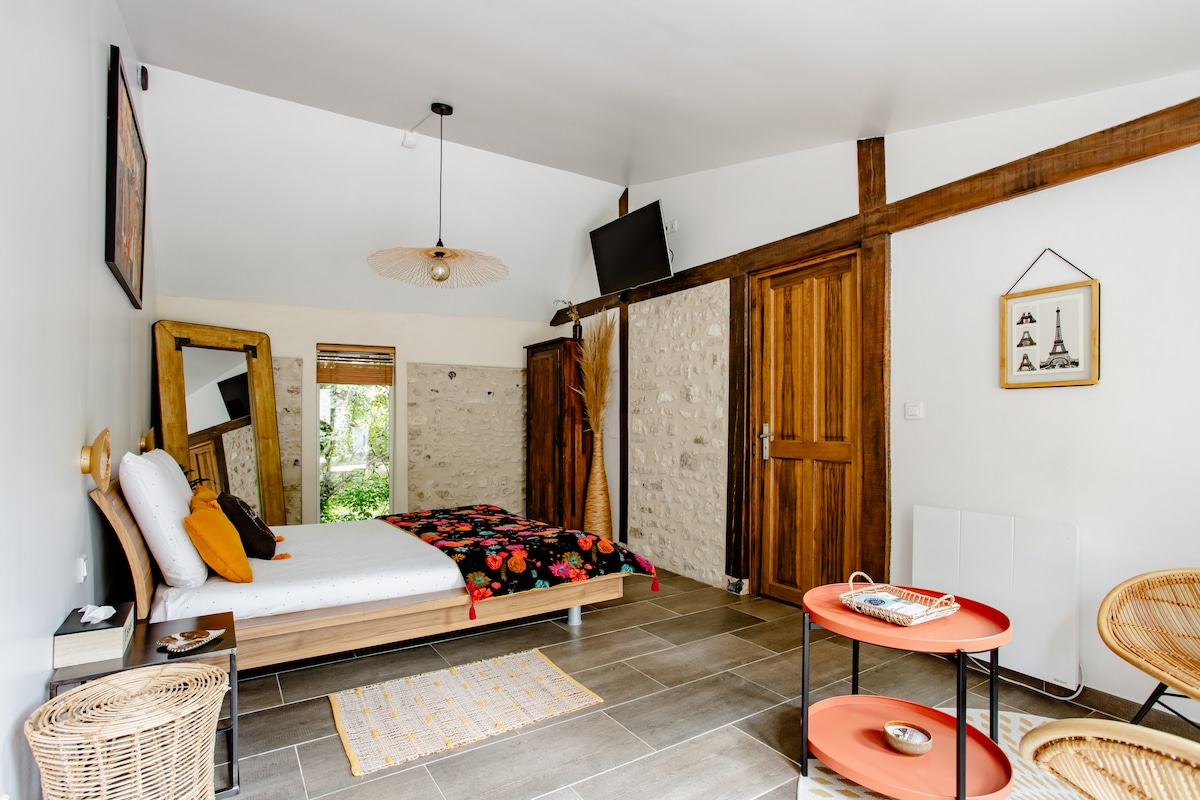 🫦Plongez dans la GoldRoom🫦 ❤️🔥Votre refuge romantique de 55m² avec sauna privatif et jacuzzi balnéo 🛁 pour une détente absolue. Le coin chambre face à la cheminée et le jardin privatif de 20m² 🪴 offrent intimité, charme et sérénité. Profitez du fumoir chauffé couvert 💨, d’une cuisine suréquipée 🍳, du WiFi 🛜 et du parking privé 🅿️ . À seulement 15 min de Paris via l’A15, c’est l’escapade parfaite pour couples en quête de bien-être, luxe, calme et moments inoubliables.🔥
