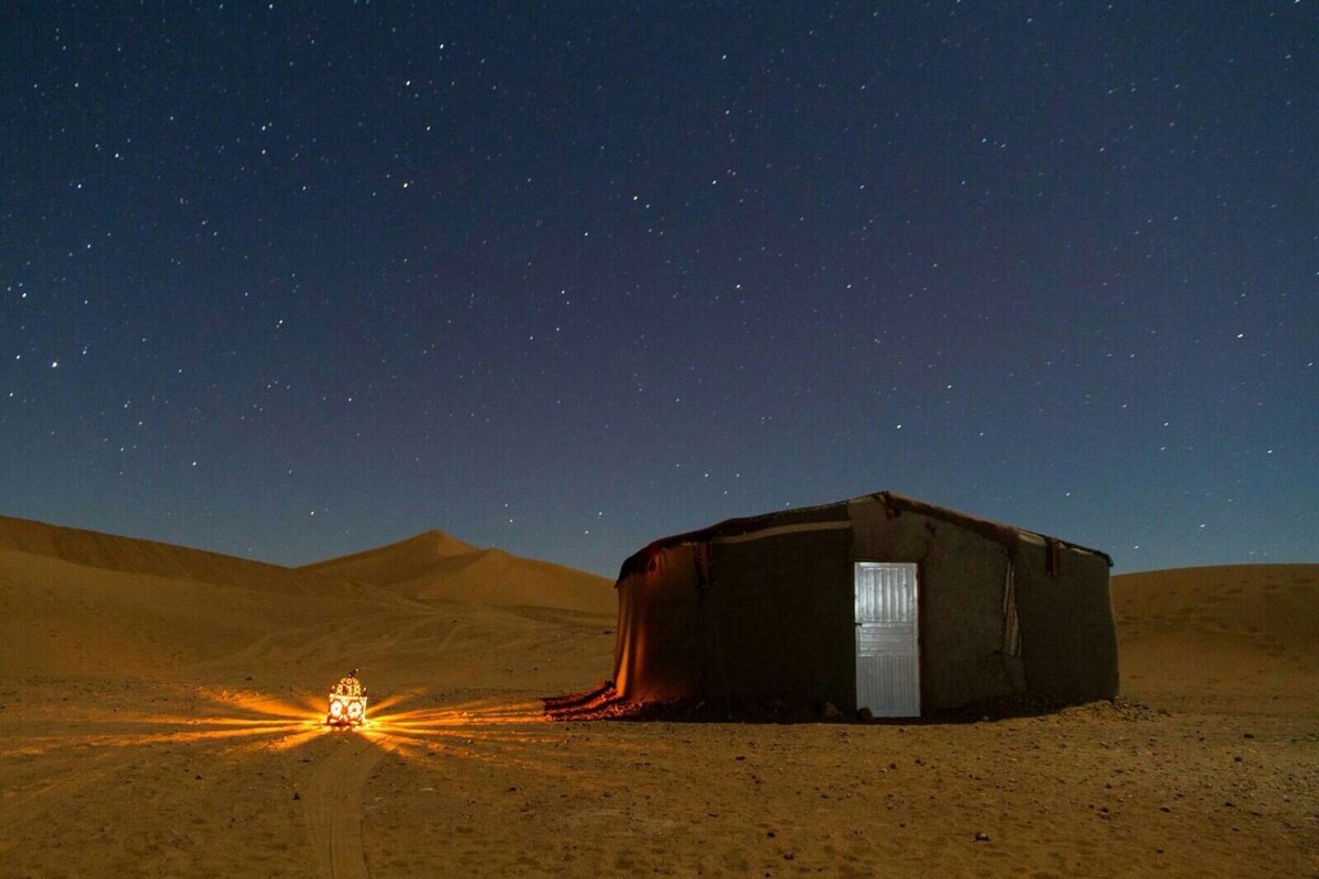 Khám phá vẻ đẹp phi thường và sự yên tĩnh của sa mạc Sahara tại khu nghỉ dưỡng cắm trại độc quyền của chúng tôi. Đây không phải là điểm du lịch điển hình của bạn. Trại do gia đình tự quản của chúng tôi là một bí mật được giữ kín, nơi bạn có thể hòa mình vào nền văn hóa phong phú của gia đình Ma-rốc địa phương của chúng tôi. Chúng tôi cung cấp một loạt các trải nghiệm độc đáo, bao gồm các lớp học nấu ăn trên sa mạc, làm bánh mì, âm nhạc truyền thống, đi lạc đà và nhiều trải nghiệm khác. Bạn có thể ngắt kết nối với thế giới hiện đại, kết nối lại với thiên nhiên và tận hưởng sự thanh bình của sa mạc Sahara.
