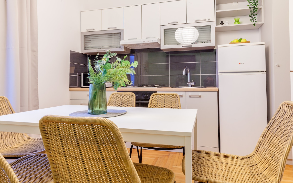 Experience Zagreb's heart from our stylish 2-bedroom apartment on Masarykova ulica. Tastefully decorated, it features a luxurious king-sized bed, two comfortable singles, and a versatile sofa bed for your group's perfect sleep setup. The apartment is located in a pedestrian zone, and the parking is available (and free) in a nearby garage, so your car is safe while you explore the pedestrian zone, historic landmarks, museums, and Zagreb's vibrant culinary scene.