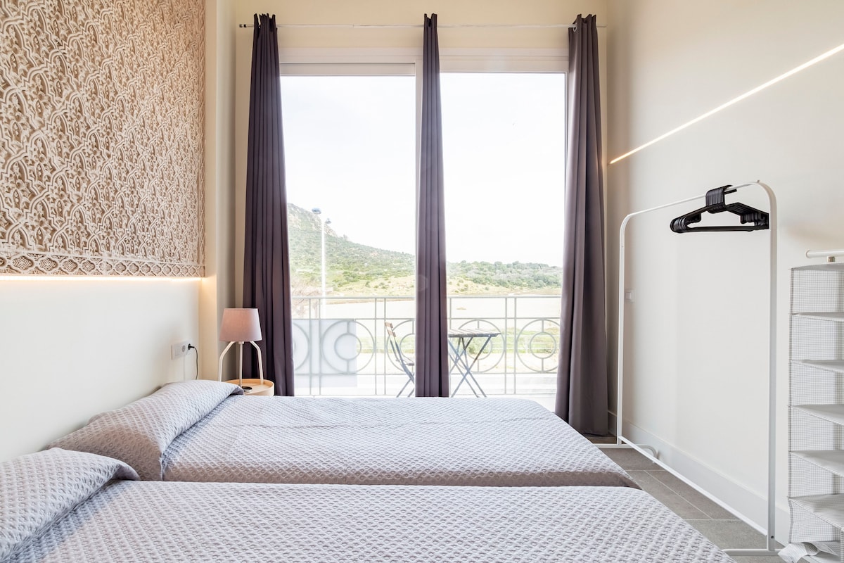 Ngôi nhà của chúng tôi nằm trong sân trong khu phố Andalusia điển hình, trên một trong những con phố chính của trung tâm lịch sử Tarifa. Đó là một ngôi nhà rất sáng sủa và quyến rũ. Tường đá, dầm gỗ, hệ thống ống nước và sàn gỗ, và bếp trên tầng thượng với tầm nhìn ngoạn mục ra Eo biển và Ma-rốc