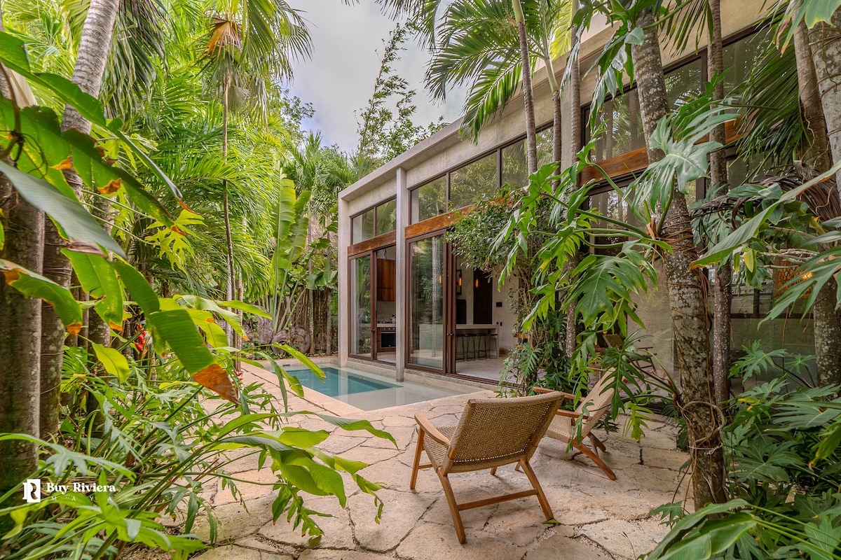 En Casa Kuro, la arquitectura japonesa dialoga con la selva maya en un refugio de contemplación. Creación de Namus, desarrollador publicado en las más importantes revistas de arquitectura global como Architectural Digest, ArchDaily, Design Boom y en el libro "Lo Mejor de la Arquitectura Mexicana del Siglo XI", además de múltiples premios internacionales. Este depa en primer nivel es un templo para los amantes del arte: 2 recámaras, alberca privada, tina y vistas a la jungla.