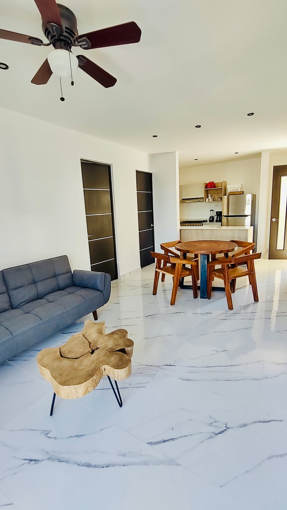 Căn hộ chung cư thoải mái và nằm ở trung tâm La Veleta Tulum, ở tầng 2, với các cửa hàng và nhà hàng nằm trong khoảng cách đi bộ. Tận hưởng sân thượng lớn với hồ bơi, giường tắm nắng và bàn. Căn hộ đi kèm 1 giường cỡ king (trong phòng khách mở rộng), 1 giường đôi (trong phòng ngủ), bếp đầy đủ tiện nghi, 1 phòng tắm rộng rãi, TV thông minh, điều hòa nhiệt độ, Wifi 400 Mbps và bàn ăn lớn. Tòa nhà boutique có thang máy và chỉ cách các bãi biển ngoạn mục và đẹp của Tulum 10 phút.