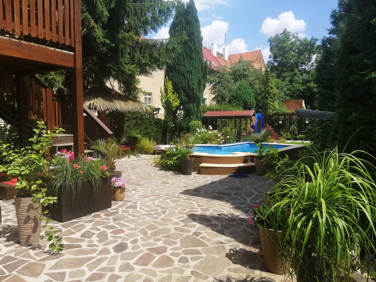 Chậm lại và thư giãn. Vị trí yên bình và yên tĩnh trong trung tâm spa. Studio tầng lửng được thiết kế dễ dàng và mới nằm gần Suối nước nóng và hàng cột - khoảng cách đi bộ trong vòng 2 phút - trong một ngôi nhà cũ (tầng 4, không có thang máy) trên một con phố được gọi là phố Steep và nó thực sự là như vậy. Có một khu vườn để thư giãn.