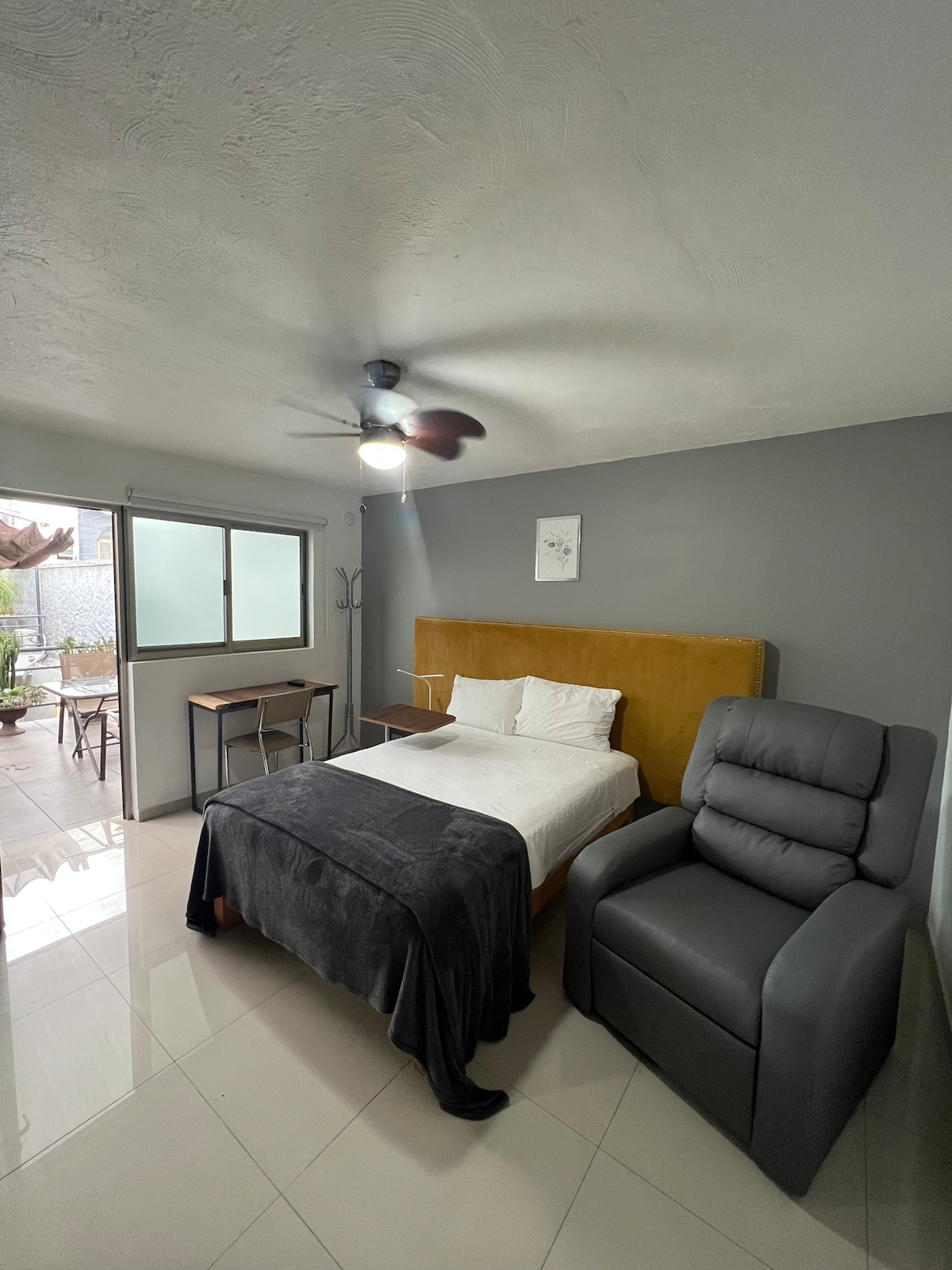 Hoàn hảo cho các cặp đôi hoặc du khách đi một mình tìm kiếm phong cách và sự thoải mái. Tầng lửng hiện đại này có nội thất rộng rãi, WiFi tốc độ cao, điều hòa không khí và phòng xông hơi riêng để thư giãn tối đa. Tọa lạc tại Americana, bạn chỉ cách các quán cà phê, phòng trưng bày, nhà hàng và cuộc sống về đêm sôi động vài bước chân. Một kỳ ở chất lượng cao cho phép bạn trải nghiệm những điều tuyệt vời nhất của Guadalajara với sự thanh lịch và dễ dàng.