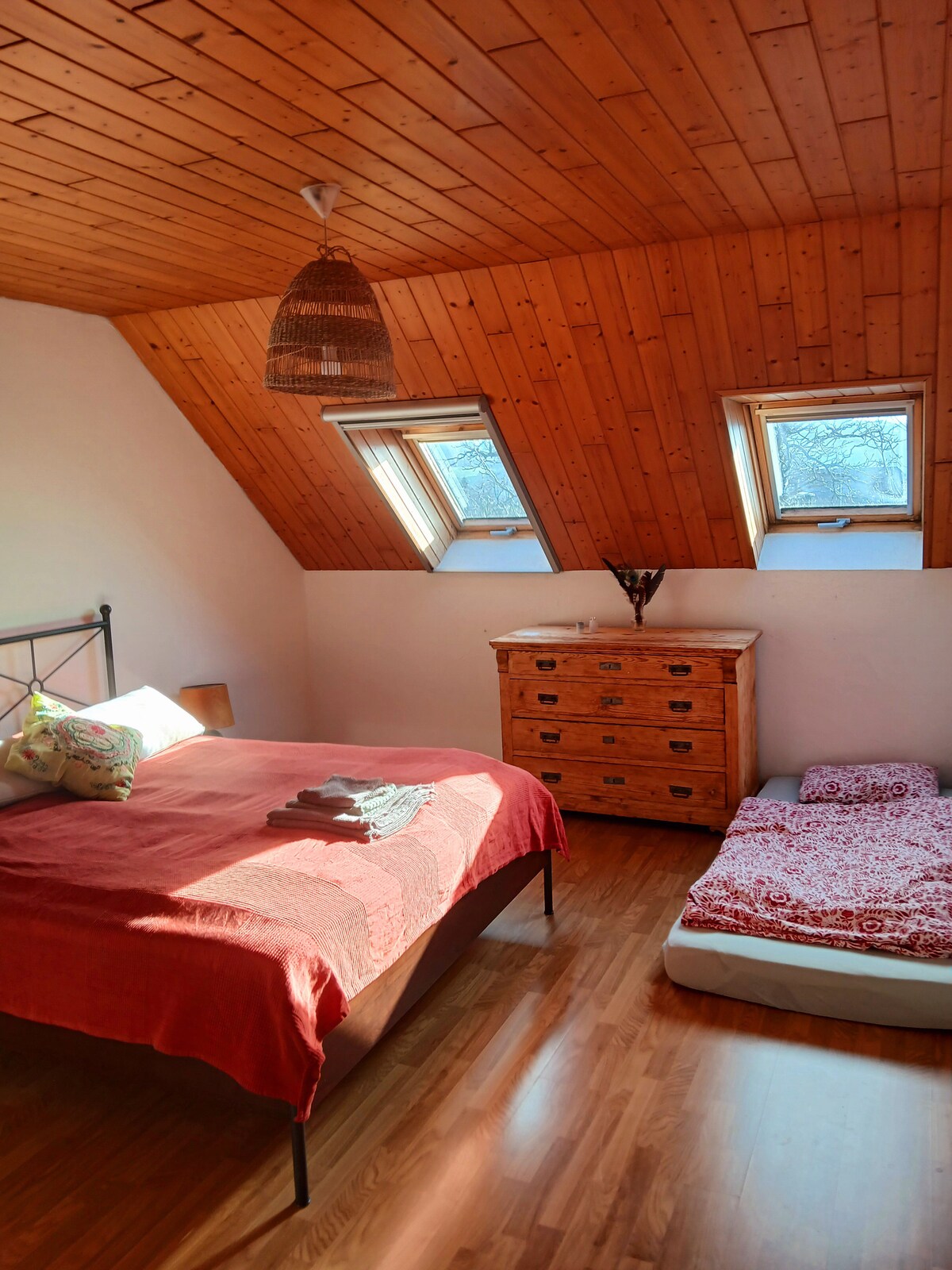 Chỗ ở nằm trong một ngôi làng bình dị, trên một trang trại HỮU CƠ nằm ở trung tâm. Trang trại nằm trên các tuyến đường xe đạp phổ biến. Bạn được hoan nghênh chào đón động vật và khu vườn của chúng tôi. Theo yêu cầu, tôi cũng rất vui được chuẩn bị bữa sáng hữu cơ cho bạn. Phải đặt trước. Giá mỗi người: Bữa sáng 15,00 Chỗ ở nằm ở tầng 2, bao gồm một phòng ngủ lớn với phòng tắm riêng và khu vực ăn uống nhỏ.