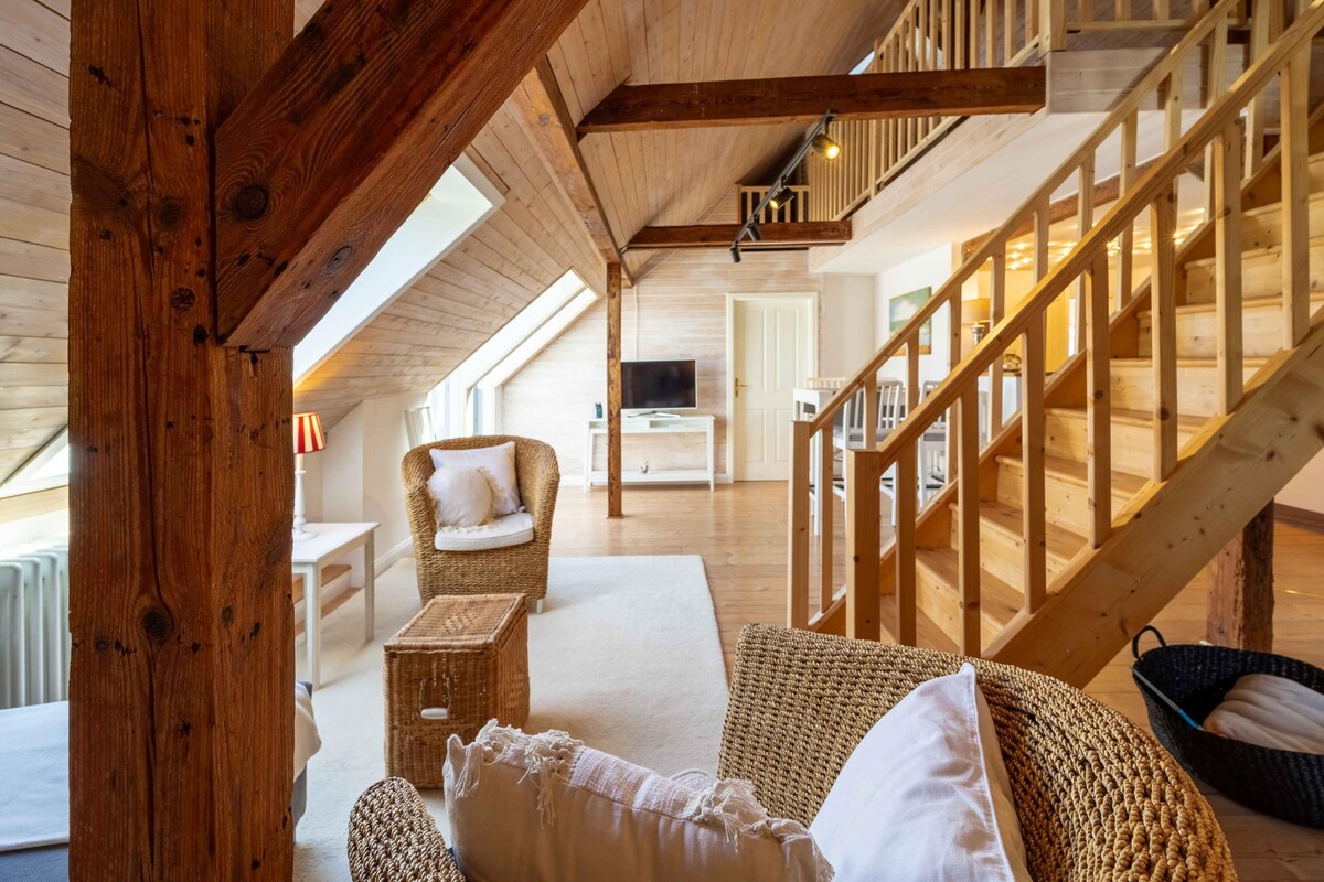 Căn hộ nằm trong một ngôi nhà nửa gỗ 300 năm tuổi ở tầng 1. Nó rất rộng rãi (65 m2) và hoàn toàn yên tĩnh mặc dù ở gần trung tâm. Việc cải tạo được thực hiện từ quan điểm sinh thái. Do các bức tường đất sét cũ được sơn keo, có khí hậu tự nhiên trong nhà, nhưng họ cần các quy tắc thông gió đặc biệt mà người thuê nhà phải tuân thủ. Không có TV, Wi-Fi có sẵn. Khi thời tiết đẹp, có thể sử dụng khu vực ngồi trong vườn.