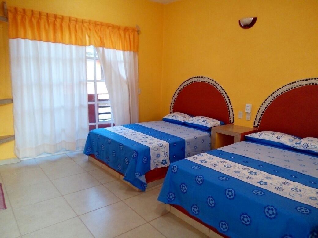 Không gian là một căn phòng lớn với hai giường cỡ queen, một tủ quần áo với gương và phòng tắm riêng với một phòng thay đồ rộng rãi. Các phòng nằm trong khu vực yên tĩnh, 15 phút đi bộ đến trung tâm thành phố và bãi biển của Zihuatanejo. Ở lối vào có một nhà hàng, cũng có một không gian mở.