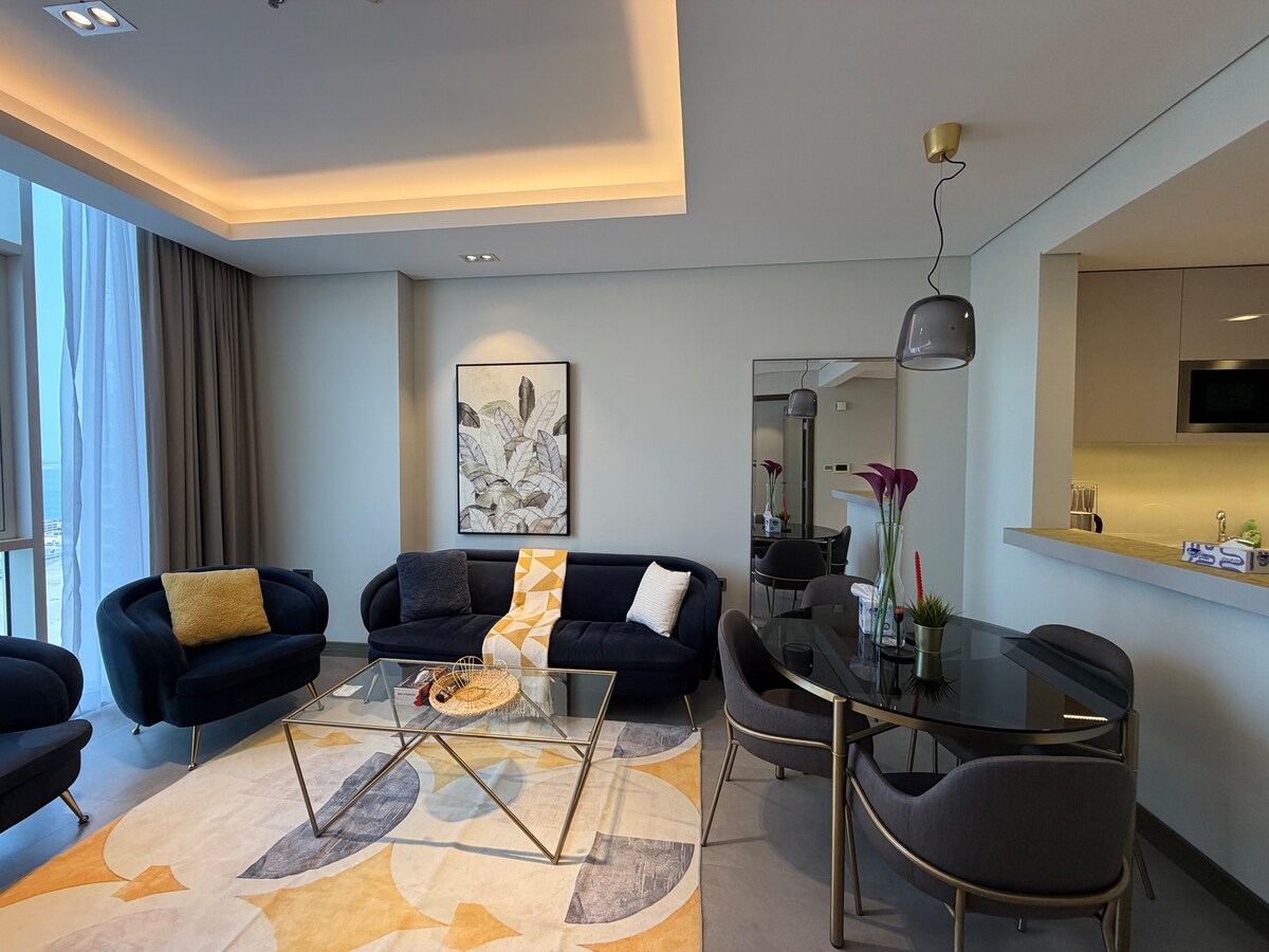 Sunrise & Direct Sea View- Private Balcony, Netflix, Pool, Sauna & Gym Wake up to breath taking sunrise and sea view of the Arabian Gulf from the 33rd floor in the heart of Manama. Located on Exhibition Road, Hoora, Near Avenues and Manama Souq, this fully furnished 1-bedroom apartment offers the perfect mix of comfort, style, and convenience. Relax in an amazing balcony with an unbelievable view! Best for both short and extended stays with fully equipped kitchen !!!