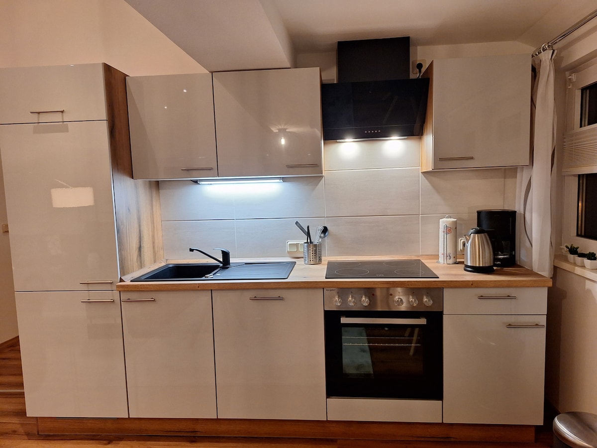 Chào mừng bạn đến với căn hộ nghỉ dưỡng "Sicasa" của chúng tôi ở Schulenberg ở Harz tuyệt vời. Chúng tôi đã cải tạo hoàn toàn căn hộ vào năm 2024 sau hơn một năm với rất nhiều tình yêu về chi tiết. Trên 43 m2, bạn có thể mong đợi một chỗ ở hiện đại và tràn ngập ánh sáng, thuyết phục với nội thất phong cách và tầm nhìn tuyệt vời. Nội thất tối giản với màu sắc tinh tế, nhiều ánh sáng tự nhiên và điểm nhấn gỗ ấm áp tạo ra một bầu không khí yên tĩnh để thư giãn.